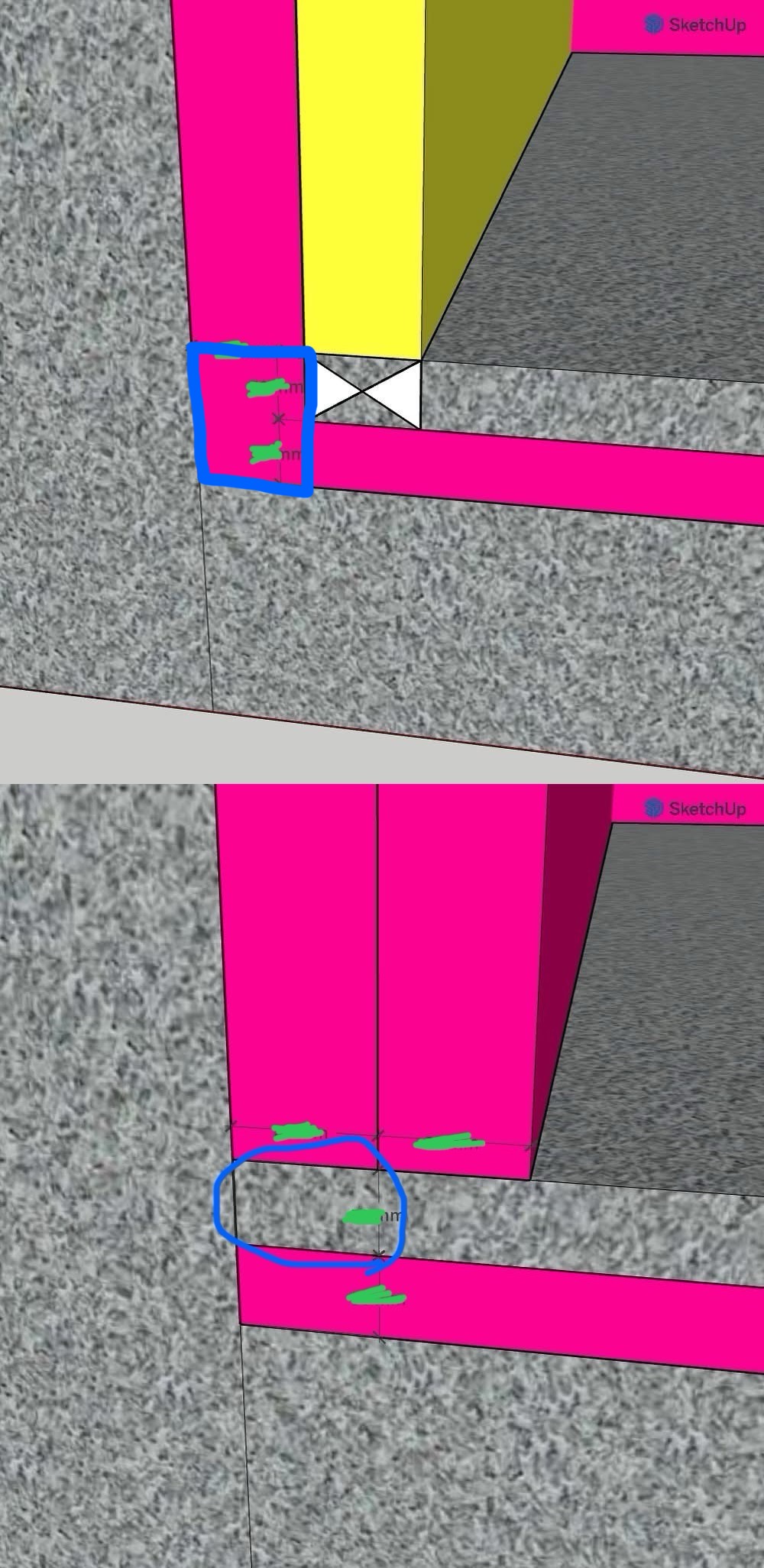 분홍색은 단열재고, 노란색은 석고보드 같은 마감재라고 생각하시몬 됩니다. 빈공간은 파란색 위치구요..