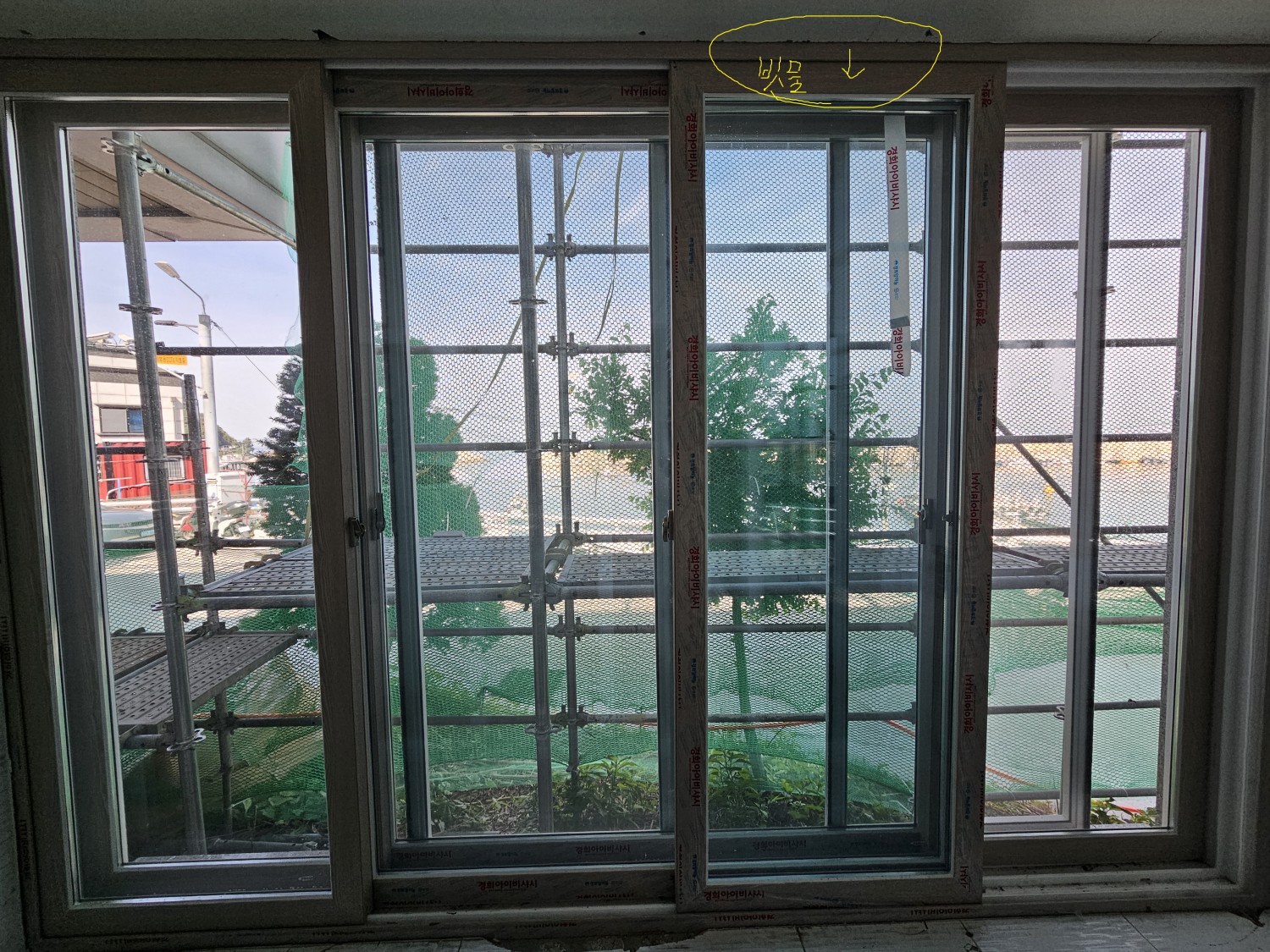 문제는 이미 틀에 몰탈이 붙어 있어서... 보호비닐과 함께 몰탈을 모두 제거하고, 창틀과 구조체 사이에 제대로된 방수 시공이 되어야 하는데, 전용 자재 시공의 경험이 없으실 것 같기에 외부용 실리콘 실란트를 이용해서라도 두껍에 방수 처리가 되어야 합니다.