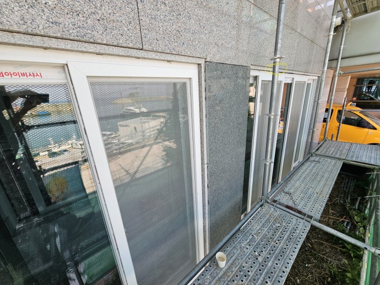 국가사업 중에 관공서 그린리모델링 사업이라고 외부 단열을 강화하여 난방비를 절약하고 탄소배출을 줄이는 사업이 있습니다. 저는 관공서와 붙어있는 사택에 거주 중인데 다 같은 건물이라 같이 외벽 리모델링 작업 중입니다. 현재는 공사가 진행 중입니다. 외벽 단열을 뜯은 뒤 기존 창호를 제거하고 새 창호를 넣은 상태입니다.