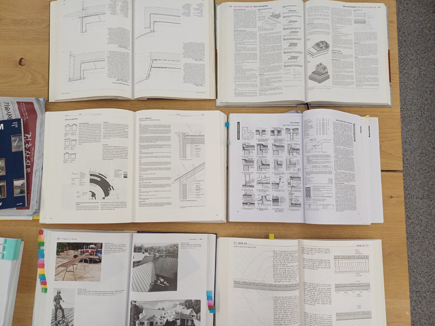 위의 책들의 평지붕 시스템에 대한 부분들을 크게 찍어, 아래 링크 하부에 첨부드렸습니다. 저는 역전지붕을 결사반대하는 시공자분들께 이 링크를 드리고, 제발 한번이라도 보시고 이야기 하자고 합니다. 설득에 참고가 되시길 바랍니다.