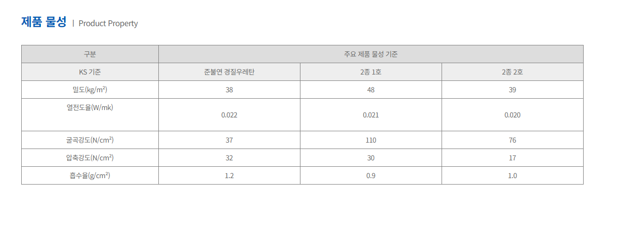 다른 곳의 답변에서 준불연경질우레탄이 XPS보다 흡수율이 높아서 추천하지는 않지만 밀도가 어느 정도 이상이면 (수치가 기억 안남) 사용할 수 있다고 답신해 주신 것을 보았는데요.