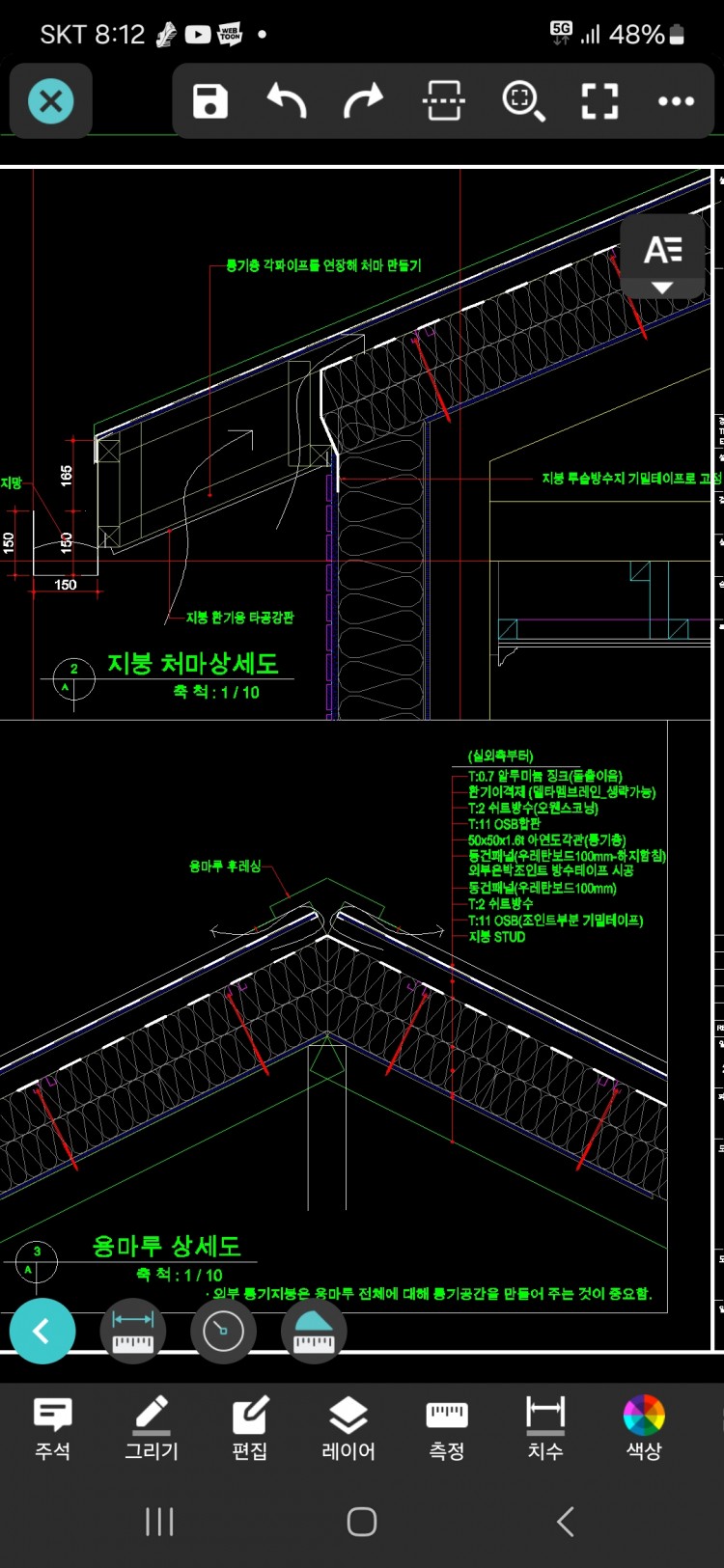 외단열로 외벽 EPS 200T로 지붕은 동건패널 100T(심 없는것) + 100T(심 있는 것) 부착하고 250mm 피스로 고정 중인데