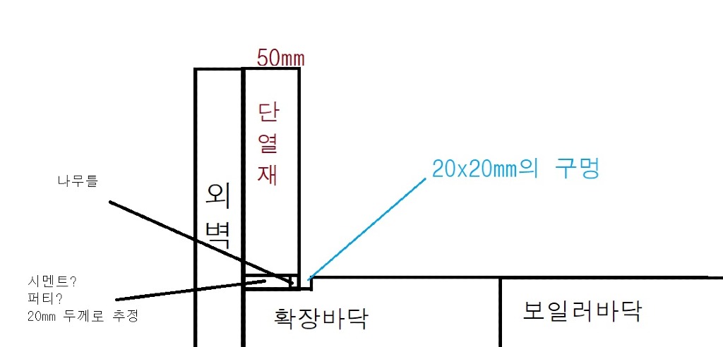 그런데 저기 파란색 부분으로 되어있는 부분에는 우레탄폼, 퍼티 등 어떤 소재로 된 것으로 메꾸는것이 가장 안전할까요? 아니면 아예 시멘트 사서 부어야 하는건가요?