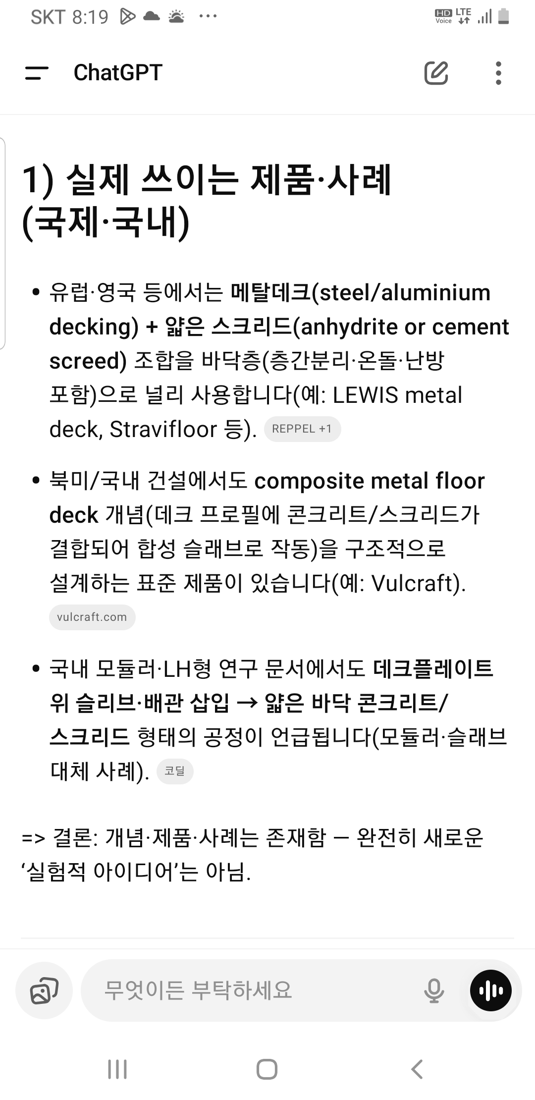 이를 다 헤쳐나가서 시공이 된다고 하더라도, 데크플레이트에 콘크리트 치는 것에 비해서 유의미할 정도의 공사비 차이는 없을 것으로 보입니다.
