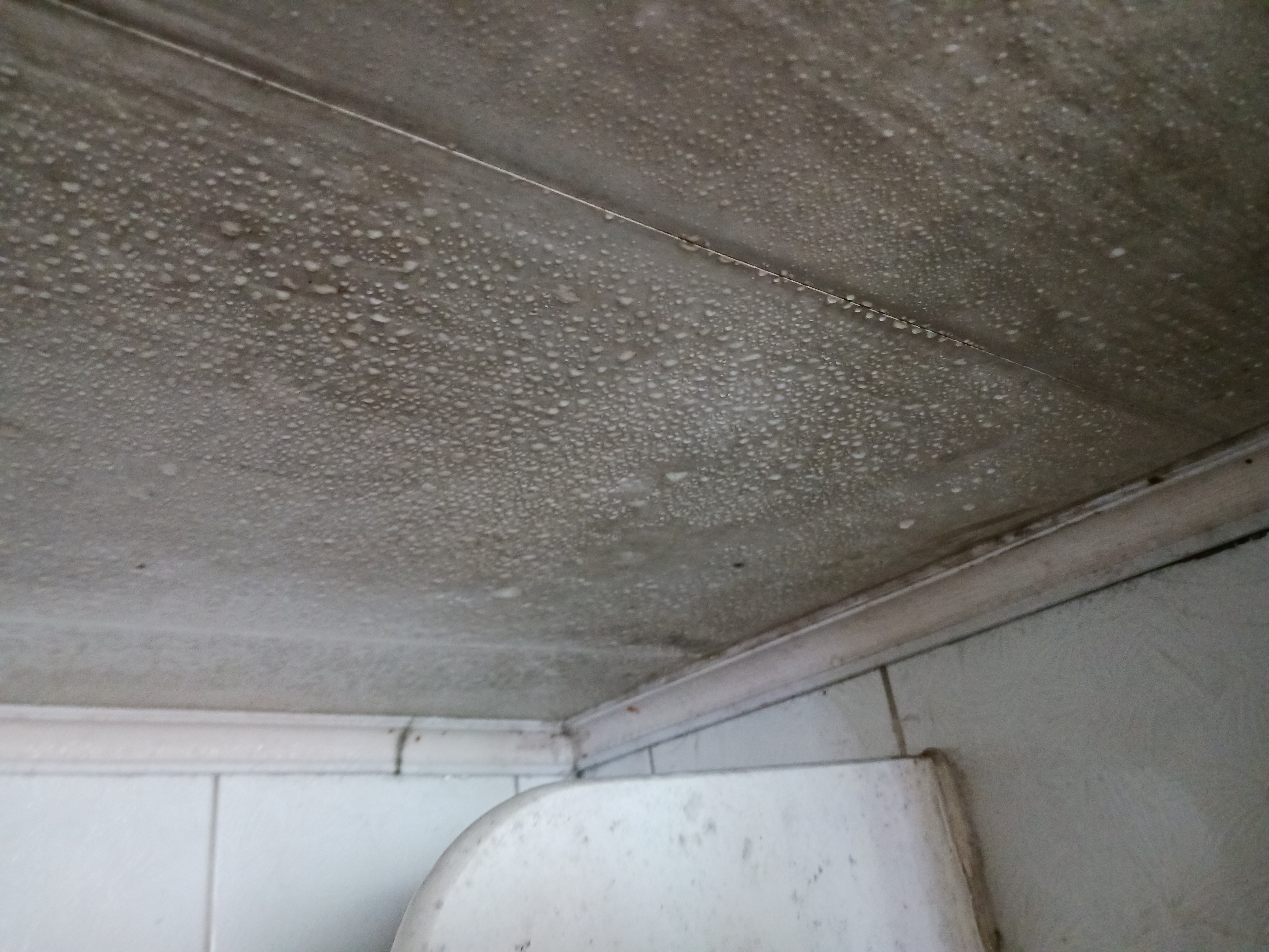 만약 그게 맞다면, 아래층의 화장실 배기 습기가 옥상으로도 빠져 나가겠지만, 이 집으로 오랫동안 유입되었는데, 집이 비어 있다 보니 온도가 낮아져 있는 상태에서 유입 습기가 결로를 유발한 것으로 보입니다.