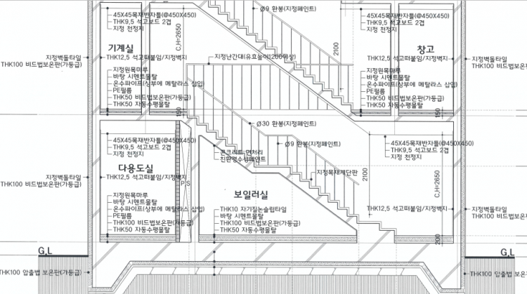 기계실 아래는 다용도실이 있는데, 다용도실은 건식으로 사용할 예정이어서