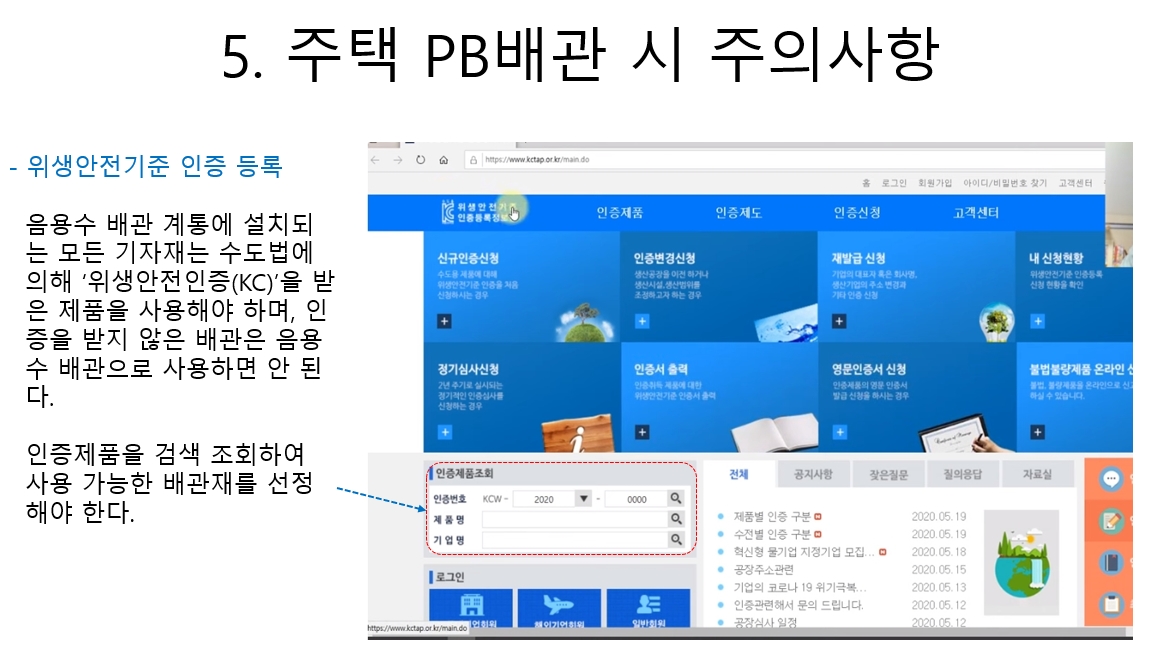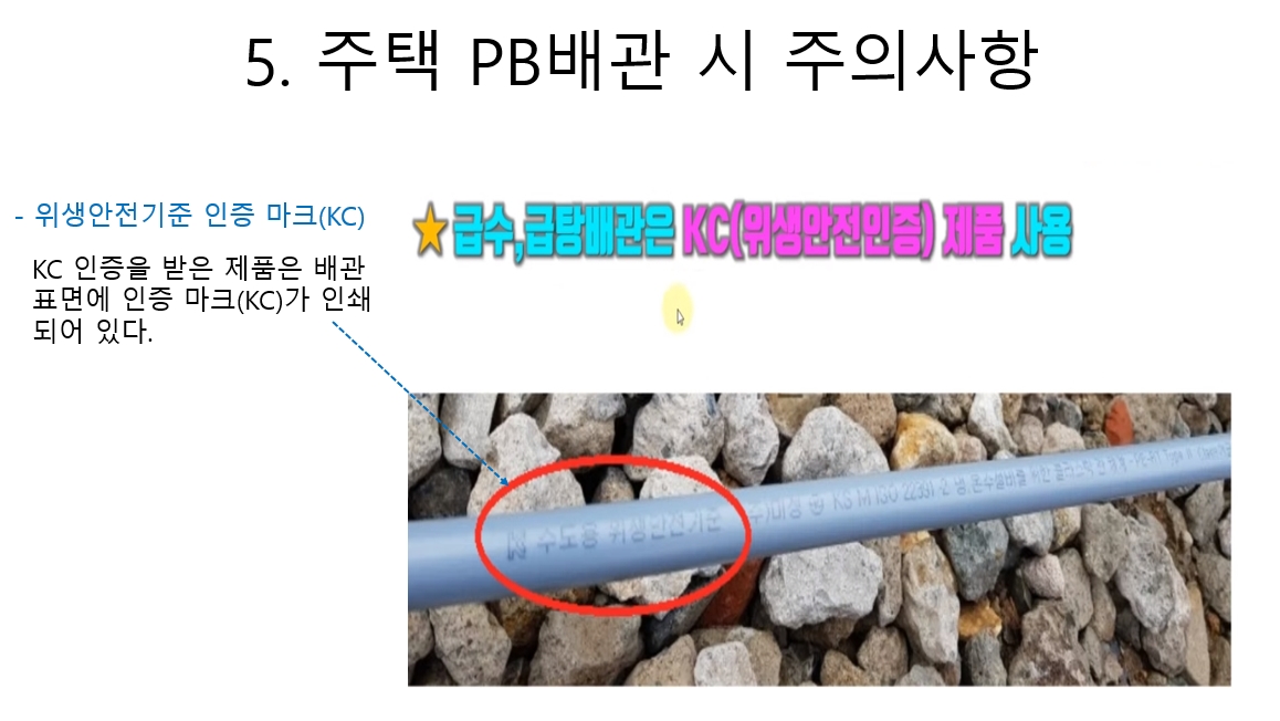 다만 여러가지 이유로 수도관은 PB관을 사용하는 것이 좋습니다.