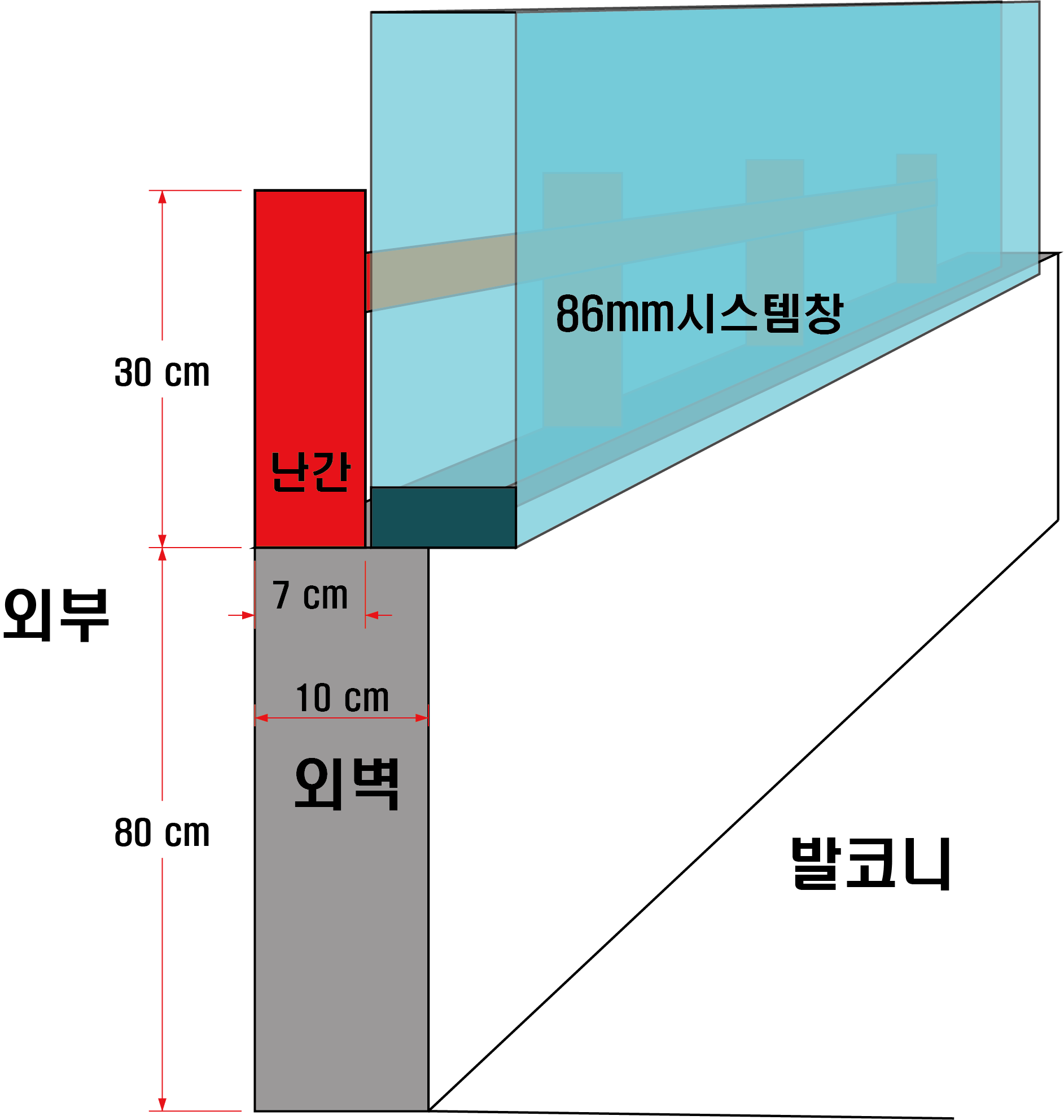 발코니 외벽의 두께가 10cm 정도인데 안전난간이 외부에 떡 버티고 있어서