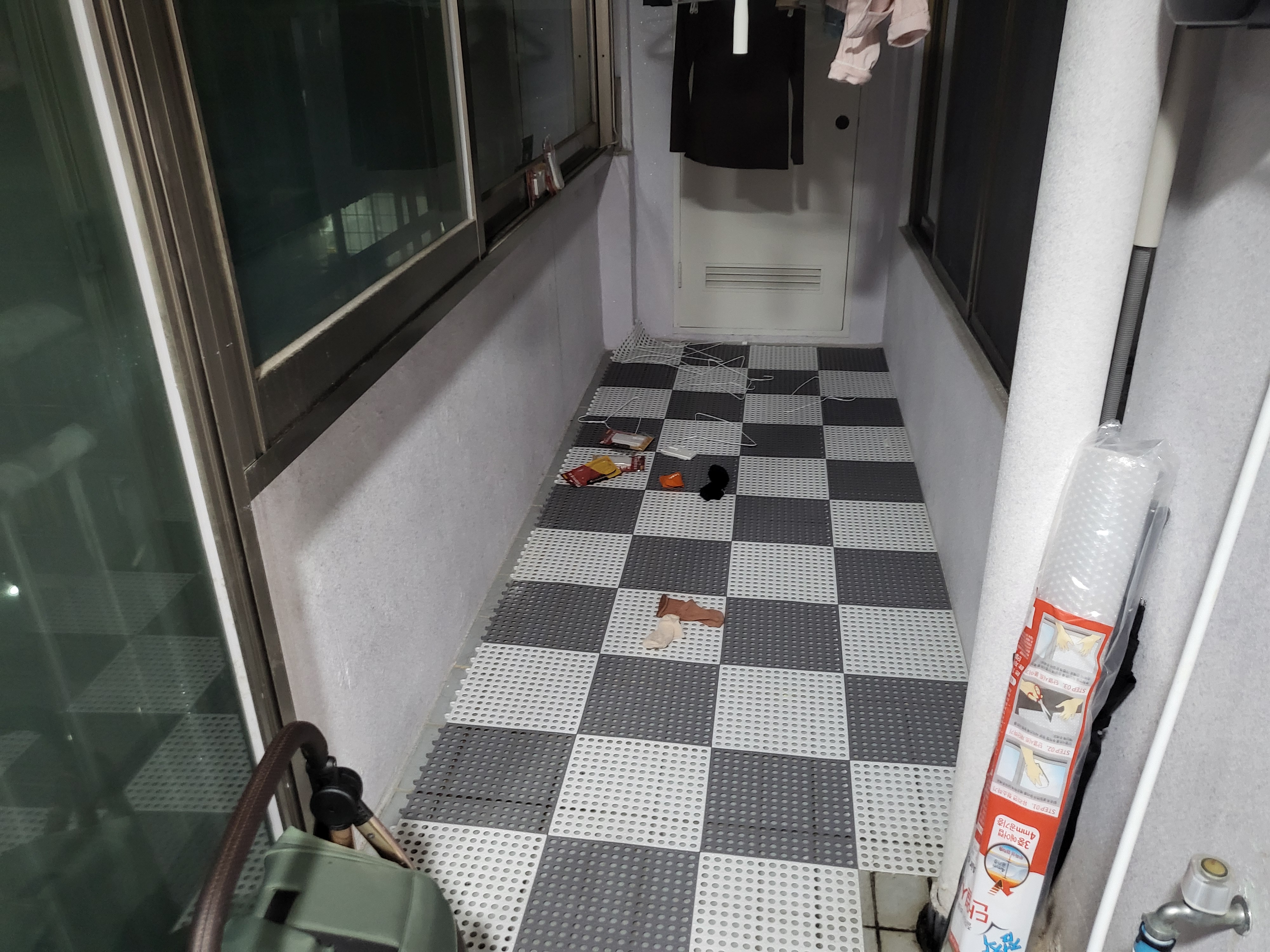 아파트 발코니 사진이며 제 사진 왼쪽의 전체높이창과 벽위에 올라가있는창의 너머가 외부이며