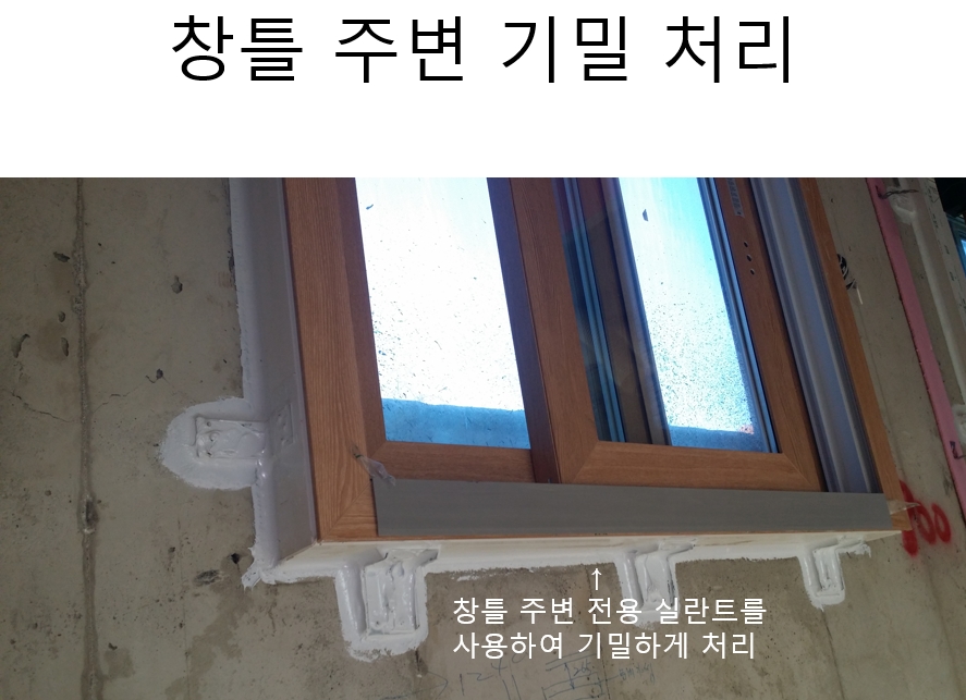 단열재 두께가 두껍기 때문에 공동주택 외부 창틀 밑에