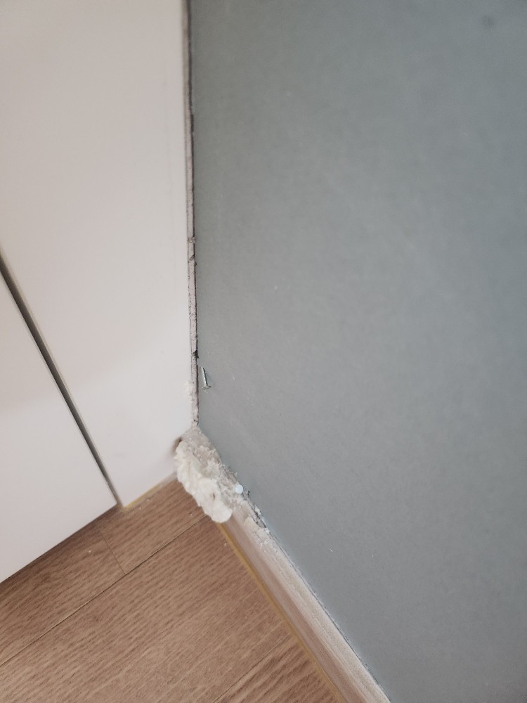 붙박이장과 연결되는 벽쪽 석고보드가 깨져서,