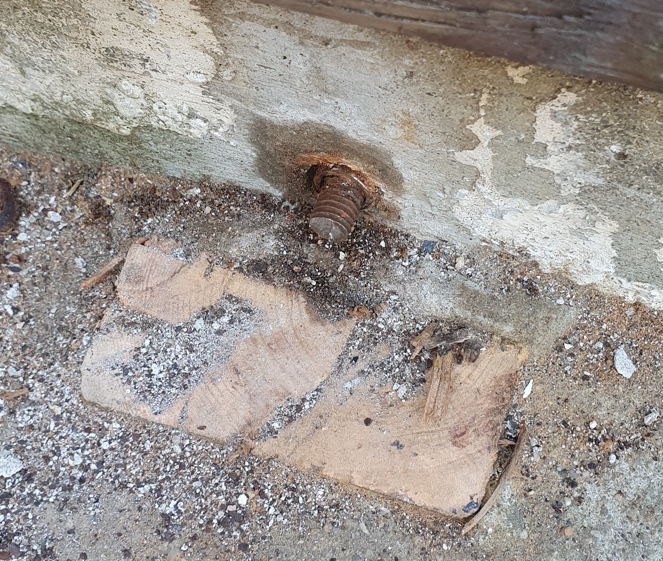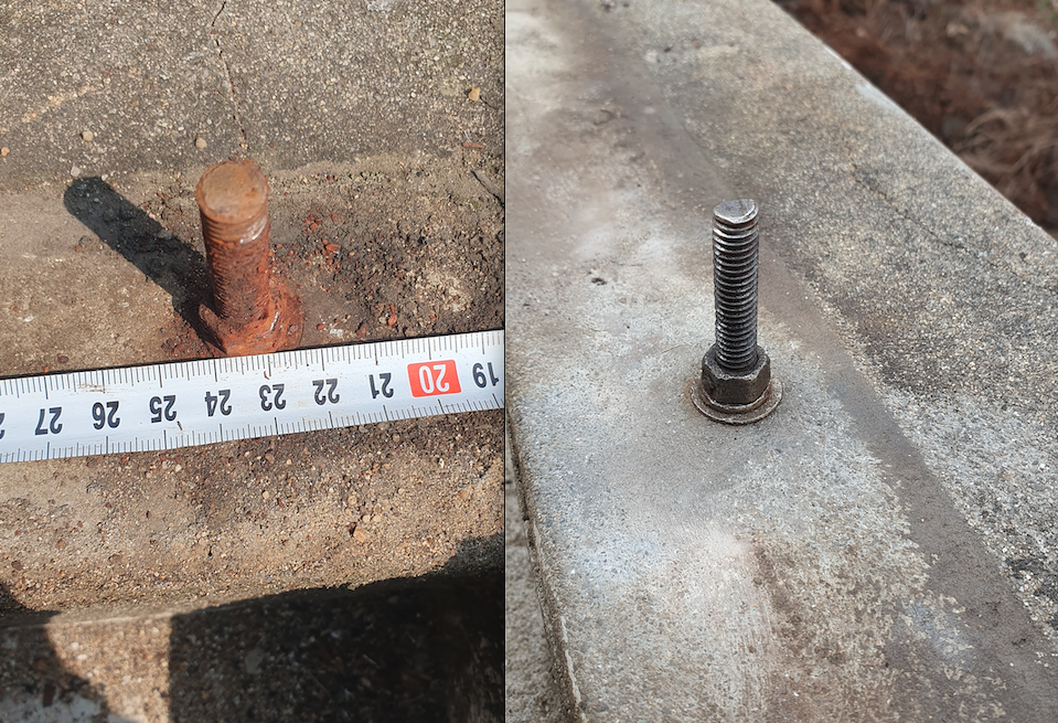 방수턱 옆면에 박혀있는 앙카입니다. 뽑는 것도 문제이지만 녹이 잘 갈릴지도 걱정이네요.