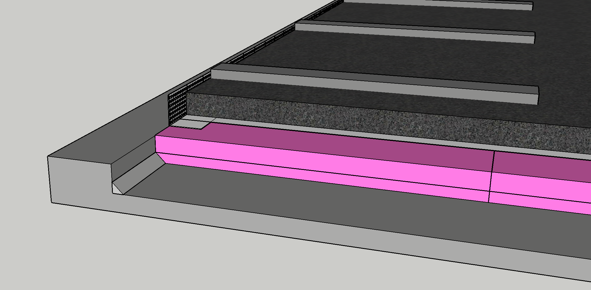 4. 방수턱 위에 목구조 파라펫을 설치하려던 기존 계획을 수정하여 협회 사이트에서 얼핏 본 펀칭메탈을 이용해 쇄석을 가두는 방식으로 역전지붕을 구상해봤습니다.