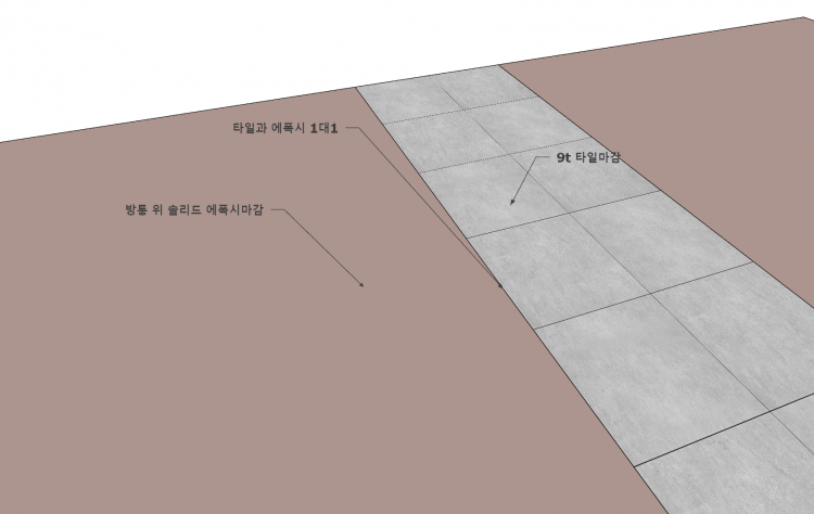 문제는 중간에 바닥 타일이들어갈 예정인데 마감이 되었을 때 솔리드 에폭시와 타일이 1대1로 마감이 되기를 원합니다