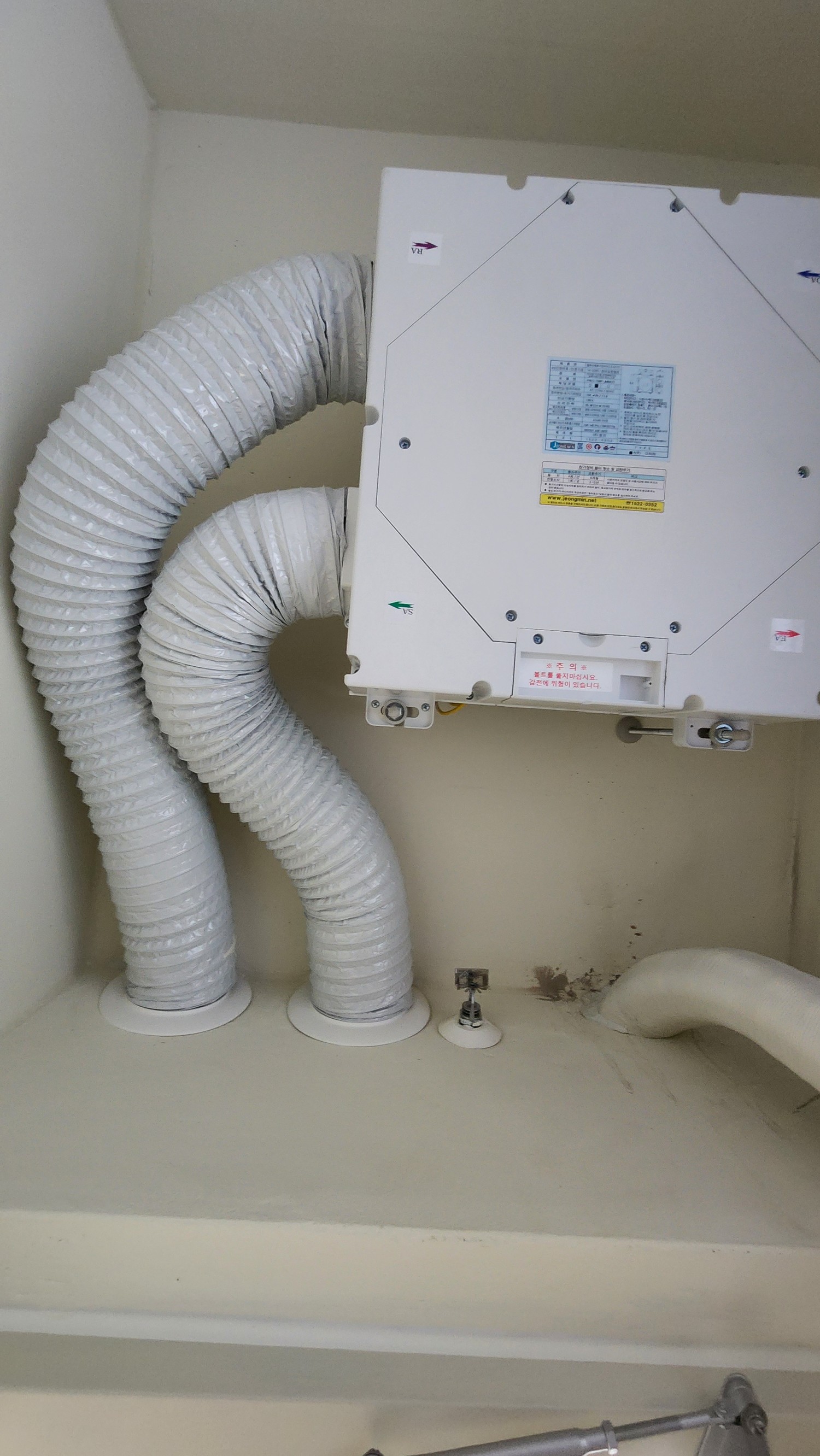 제 의견은 다릅니다. 소음자체는 전열교환기에서 나는 거고 사진 상 아파트 실외기실로 보입니다. 바로 옆 안방이 있을 것이며 안방에 분배기나. 플랫덕트가 설치되어 있을 것으로 보입니다.
