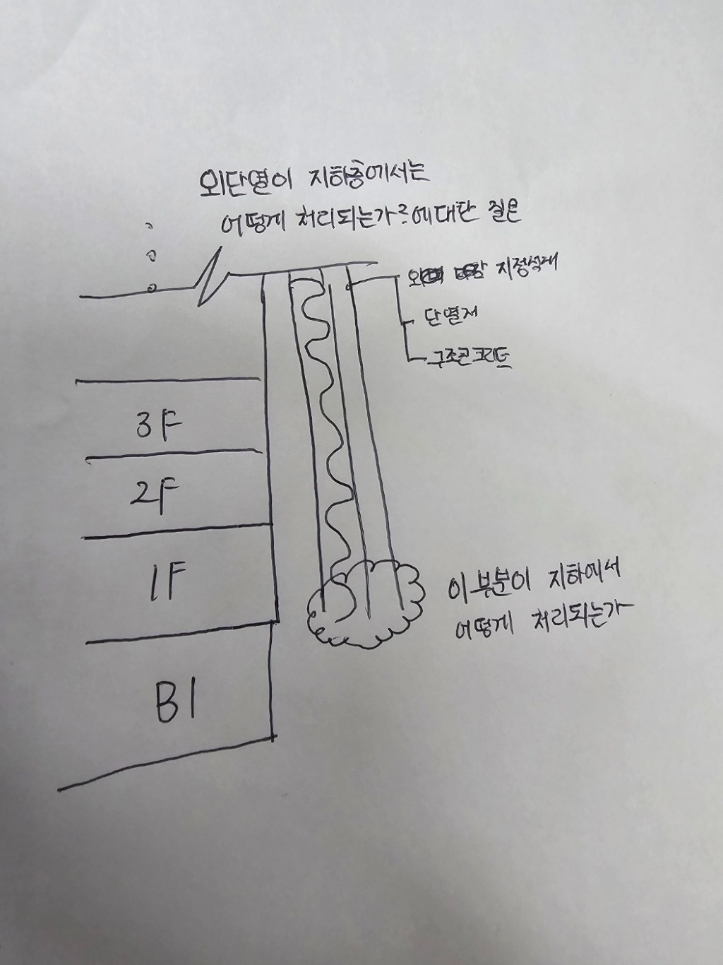 1. 기초 바닥 콘크리트 : 강도 30MPa 짜리 고강도 콘크리트, 슬럼프 값 15, ,이어치기 없이 당일 동시타설과 함께 보양 조치
