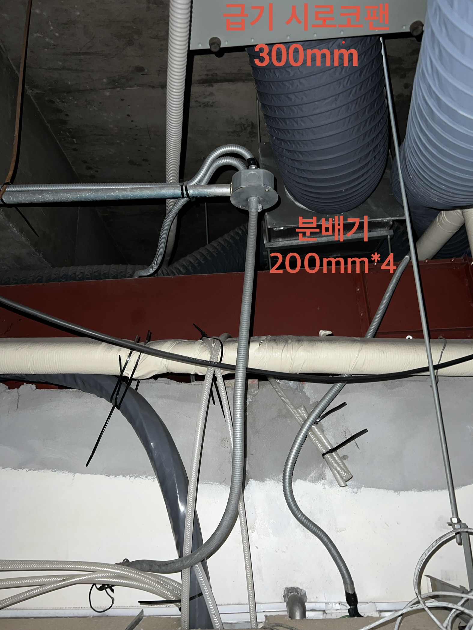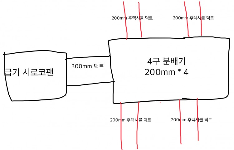 메인배관이요? 시로코팬에서 분배기로 가는 배관 말씀 이신건가요? 아니면 외부에서 시로코팬 까지 가는 배관 말씀하시는건가요?