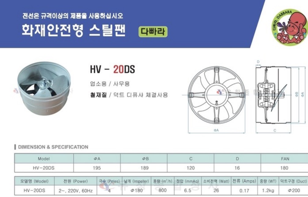 풍량 800CMH / 정압 6.5mmAq