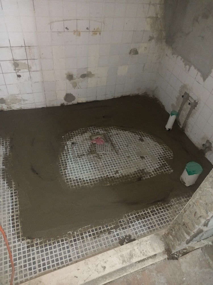 현재 깻던 부분을 2차에 걸쳐 기존 바닥 높이를 맞추는 과정에서 레미탈로 배관과 PB관 덮고 고뫄스 중간 방수칠하고 그 위로