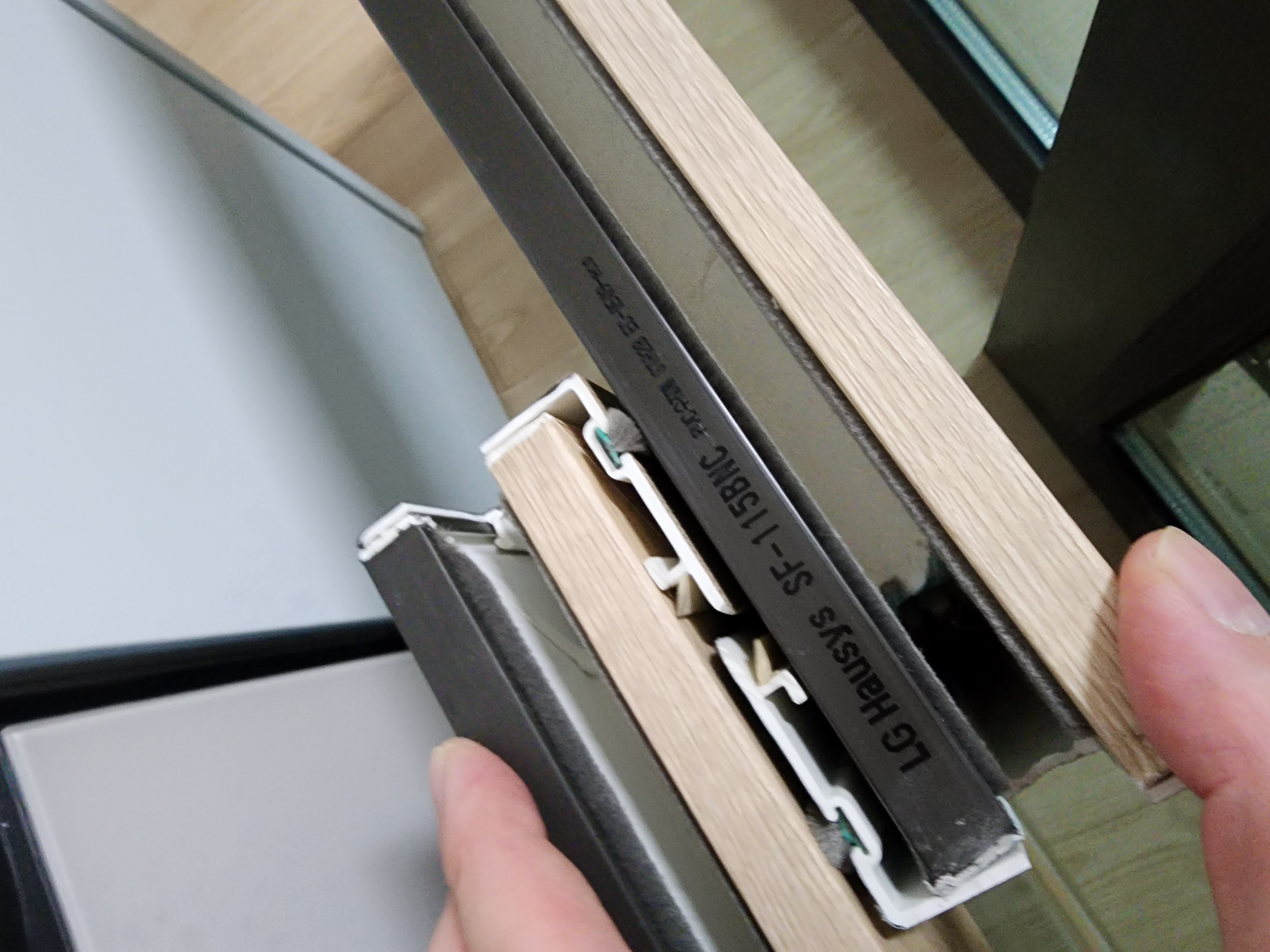 2. lx하우시스 제품인데 창과 창사이 가운데 겹침이 조금 부족합니다. 각 창마다 0.5cm~1cm 부족한데