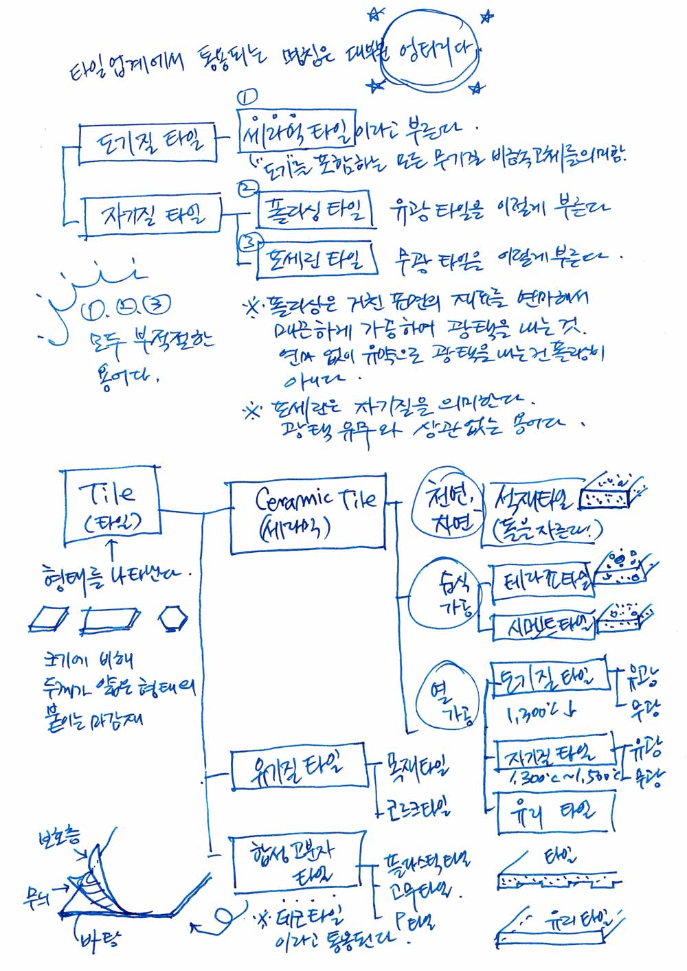 건축자재의 용어들이 잘 만들어지지 못해서 답답하고 안타까운 맘이 큽니다. 저는 연구자는 아니지만, 개인적으로 우리나라 건축용어에 대한 문제점을 심각하게 인지하고 재료별로 의견을 정리하고 연재한것이 있었습니다.