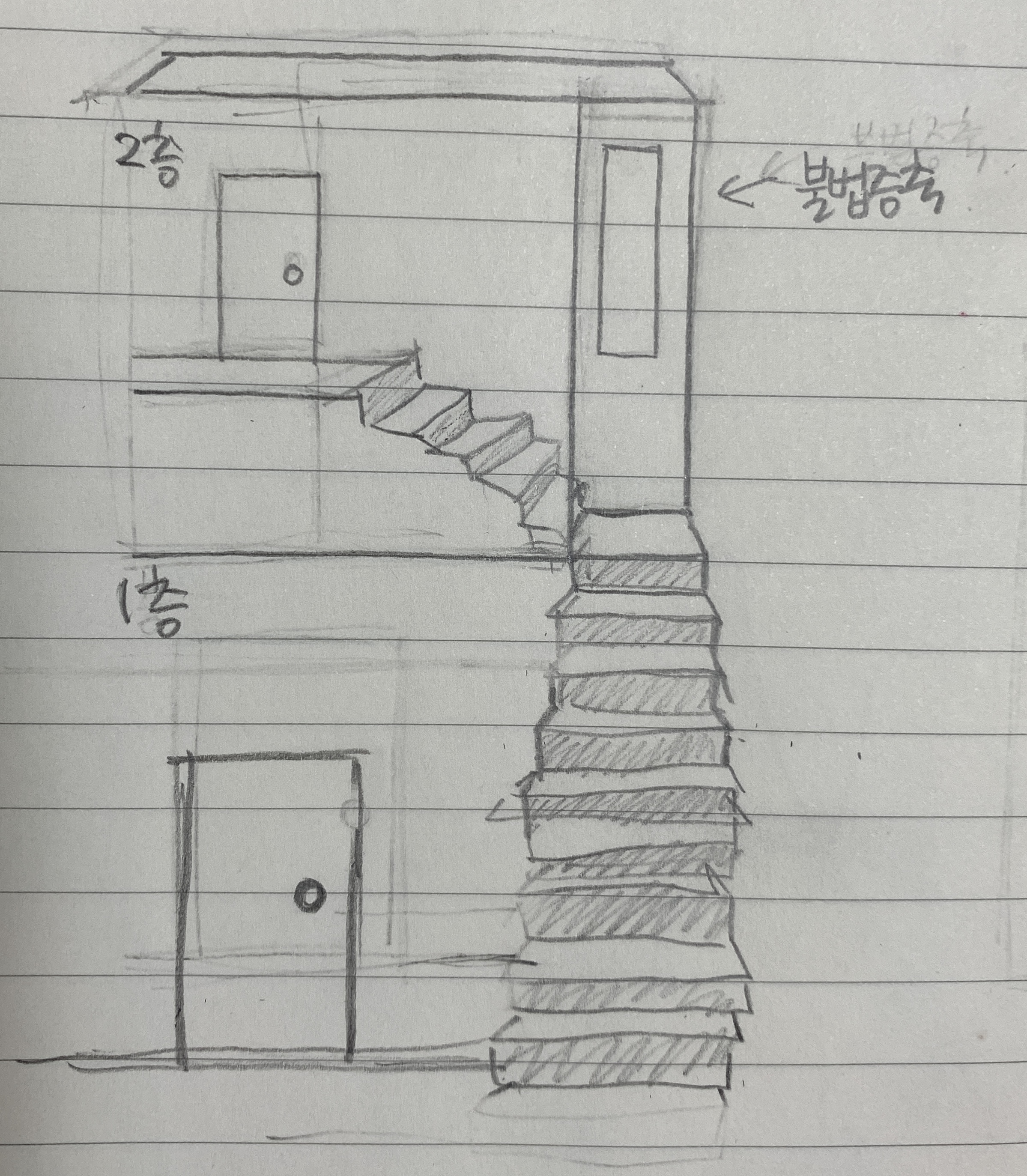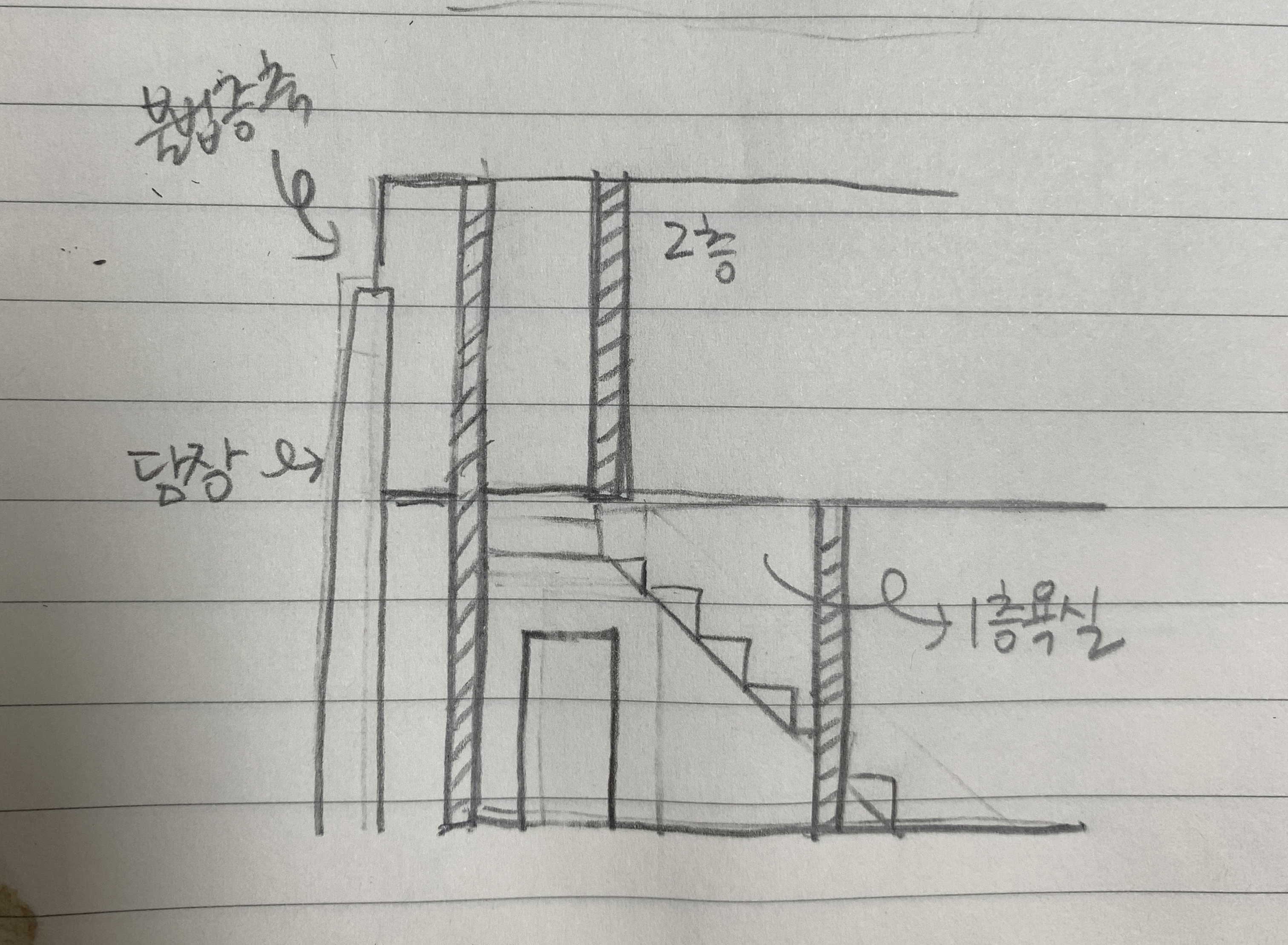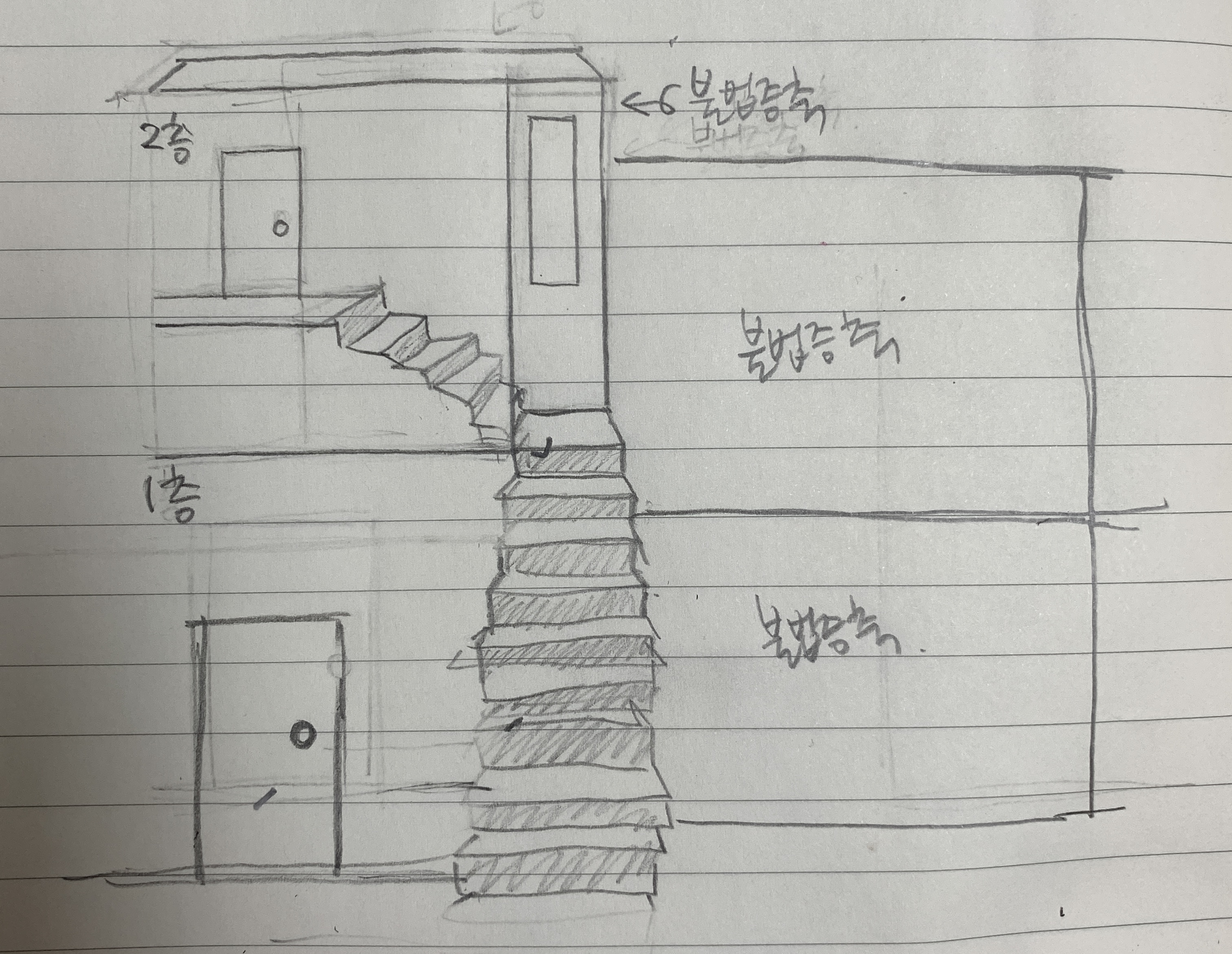 기존에는 계단 아래에 조적벽을 쌓고 문을 만들어 놓은