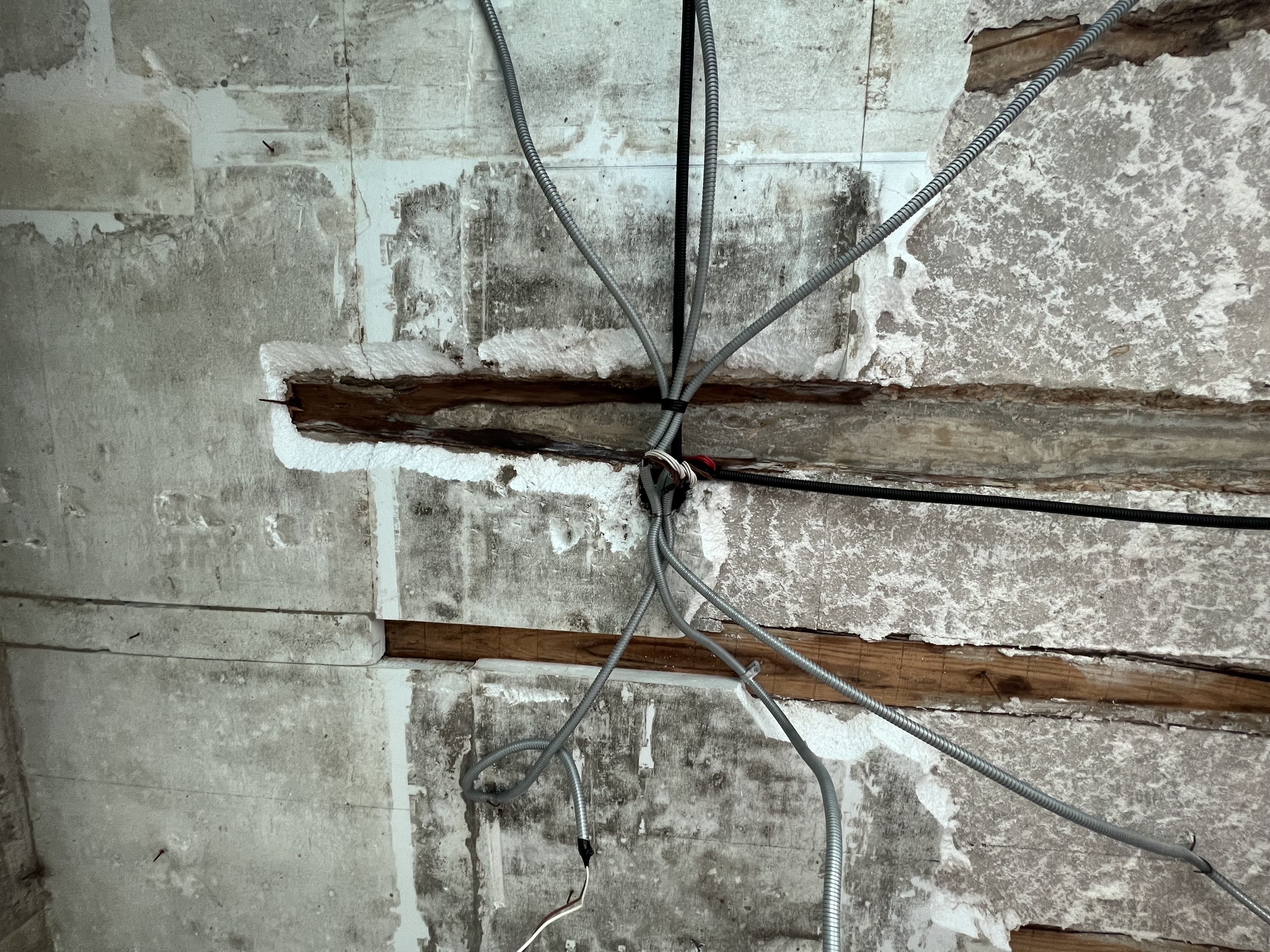 천정 전선은 사진처럼 되어 있는데요, 아직 천정 목상을 치기 전입니다.