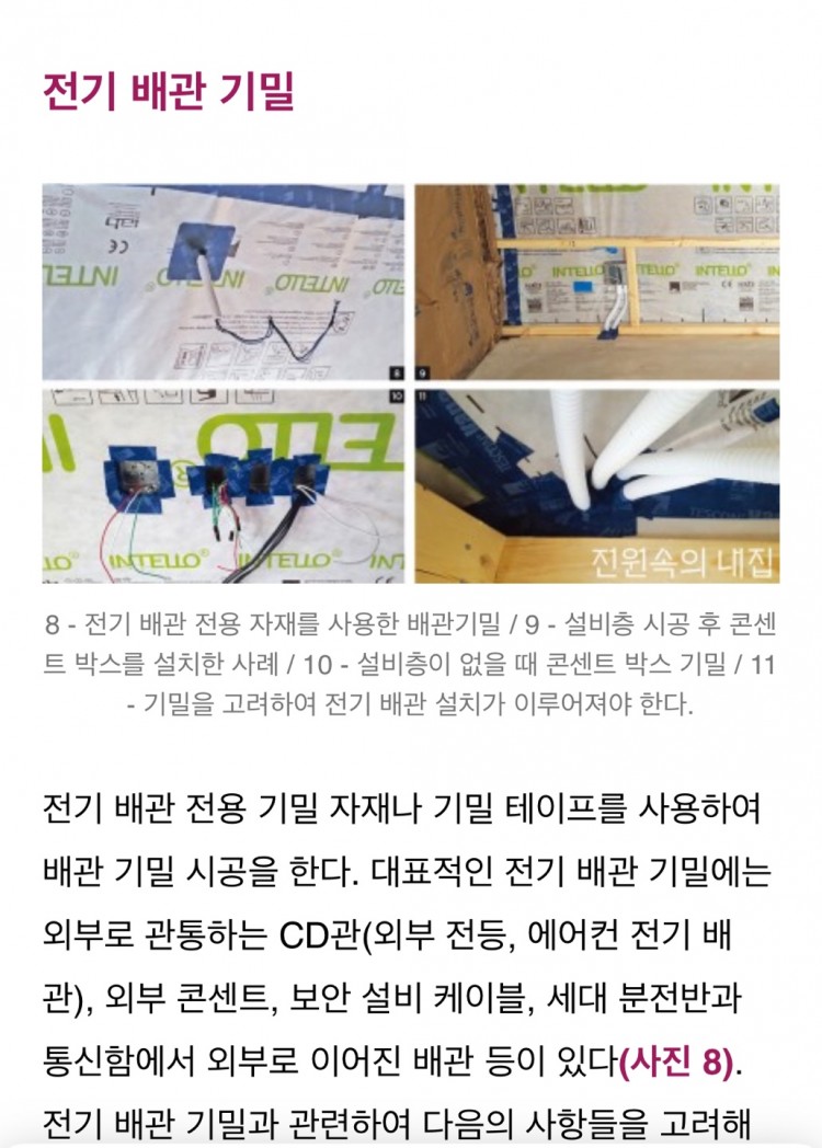 현재 공사중인 부분에서, cd관부분이 위에 적은 부분과 관련이 없는 공간이라면, 외부와 내부연결되는 분전함이나, 연결부위를 기밀이나 기밀테이프로 시공하시면 되시어요.