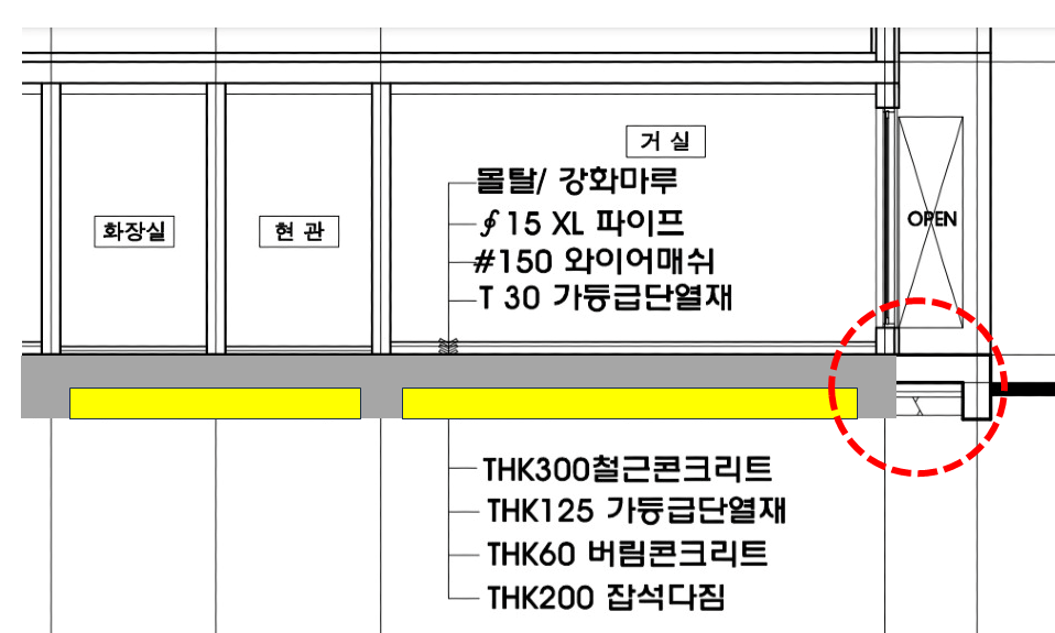 올려 주신 도면을 보면.. 300mm 두께의 단열재가 개입할 부분이 보이지 않는데요.