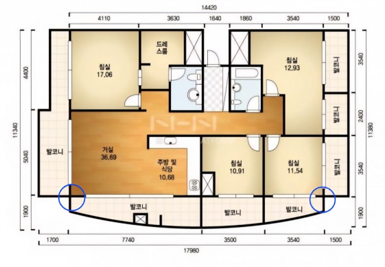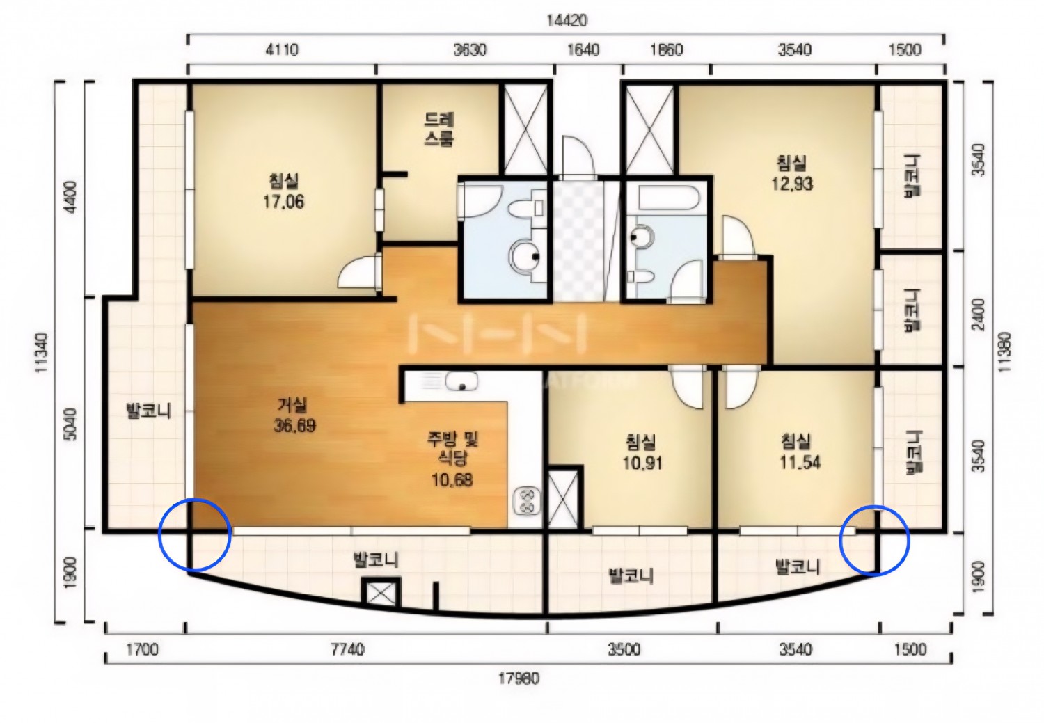1. 첨부드린 아파트 도면의 파란 동그라미 친 부분의 단열 전략에 대해 고견을 부탁드립니다. 협회를 통해서 발코니 확장을 하지 않은 집 중에서 알아보다가 해당 도면의 집을 보게 되었는데, 다른 부분은 다 마음에 드나 동그라미친 부분은 외벽과 닿아있어 결로가 생기지 않을까 걱정이 됩니다. 이러한 경우는 어떤식으로 단열을 해야할까요? 벽체, 천장, 바닥 모두 걱정이 됩니다.