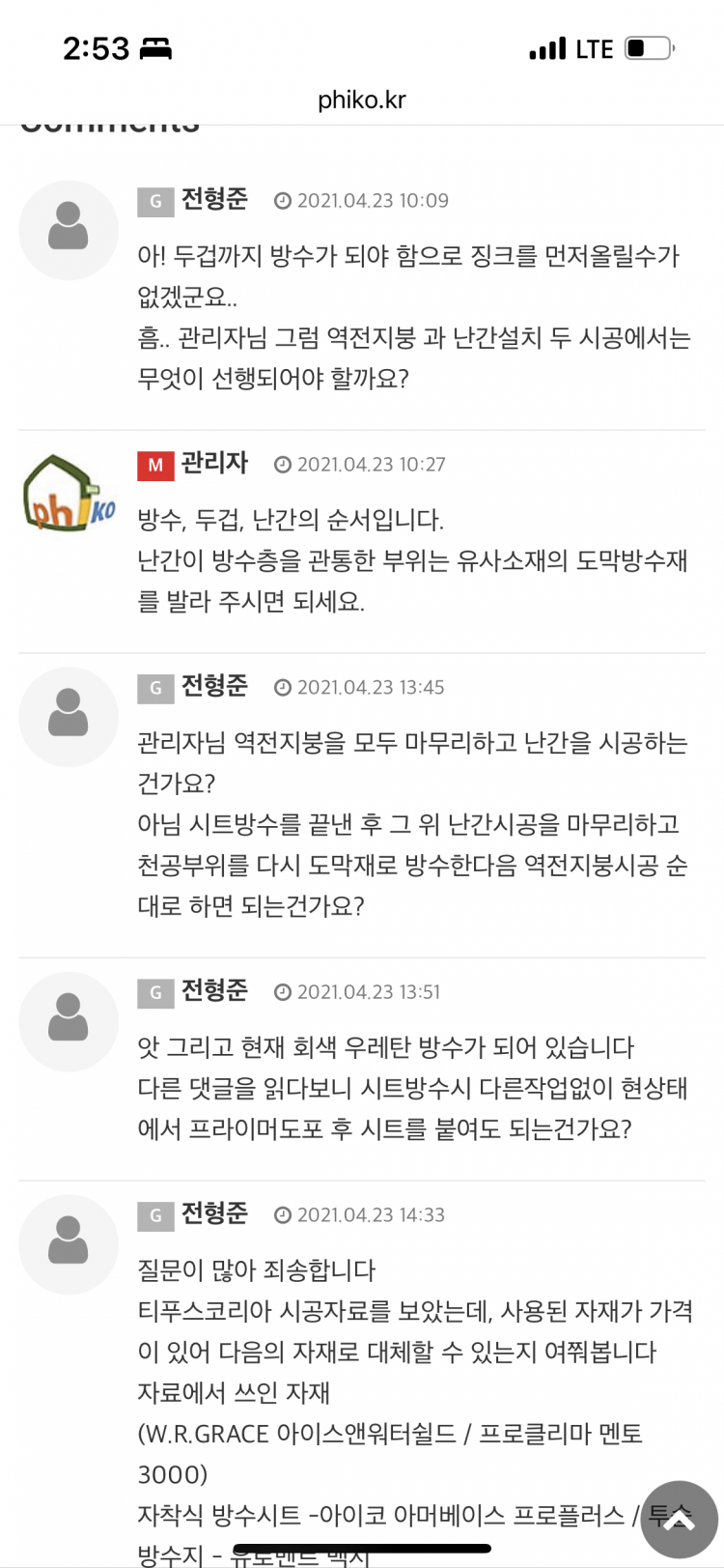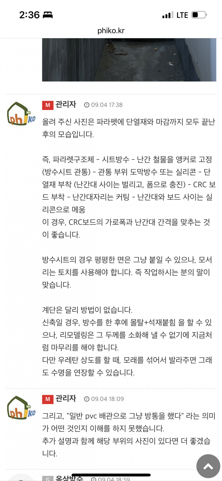 다른 댓글에서는 방수, 두겁, 난간의 순으로 시공해야 한다고 덥변해주셨는데 이부분을 제가 이해를 못하고 있는 것 같습니덬