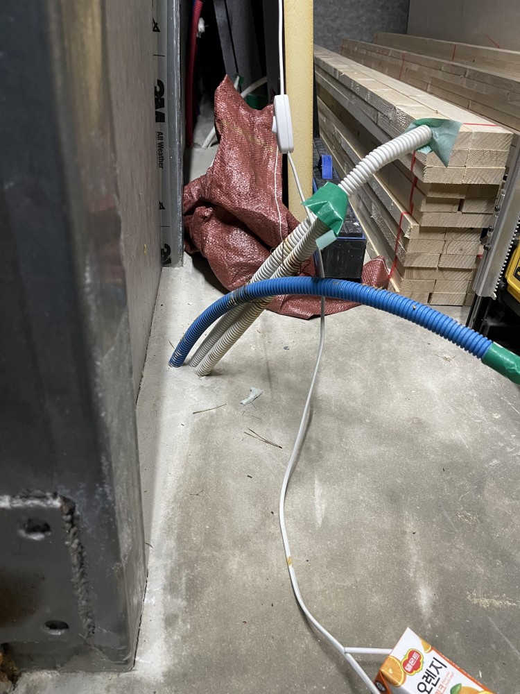 실내 목상작업 중인데, 이 cd관이 목상 위치보다 실내로 도출되어 어찌해야하나 고민 중입니다. 이미 방통이 끝난 상태로 한 달 정도 지났는데,뿌레카로 까서 밀어 넣어야하는 의견들이 있는데, 방통 크랙이 발생할 수도 있고 단열재 손상도 있을 듯한데, 이 콘센트 cd관들을 모두 죽이고 목상작업이 끝난 후 cd관을 다시 설치해야할까요?