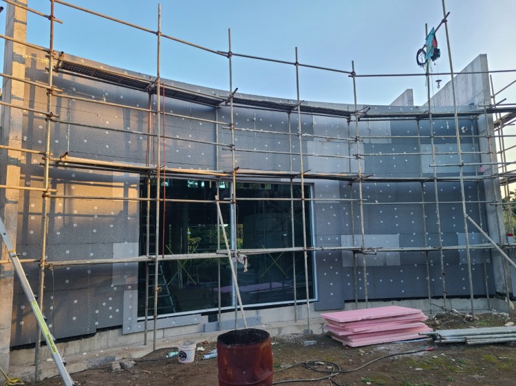 마감은 메쉬 미장 후 벽돌타일 시공 예정입니다.
