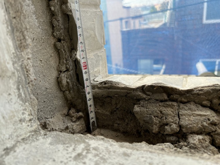 또한 안쪽면에 붙어 있는 타일은 철거를 하고 미장 장업을 다시 한 후에 창문 시공을 하는 것이 좋습니다. 외부 가설재가 보이지 않아서 가능할지는 모르겠지만, 타일이 붙어 있는 상태에서는 완전한 방수 작업이 거의 불가능하기 때문입니다.
