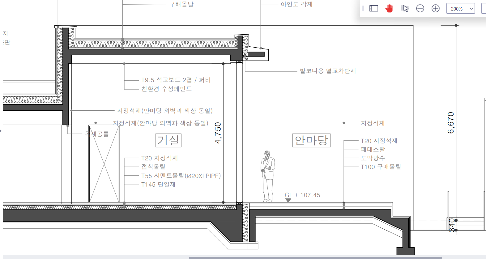 거실과 외부 바닥이 단차가 없고, 몰탈구배로 시공한 것 같은 느낌이 듭니다.