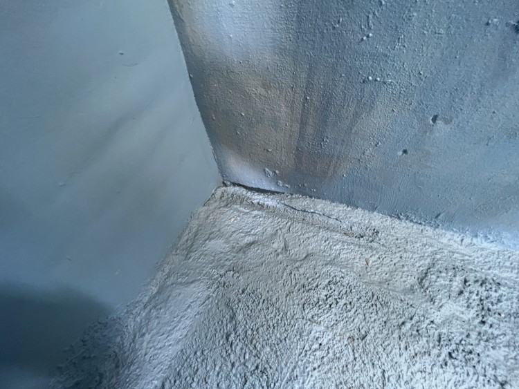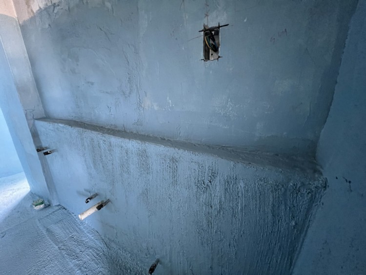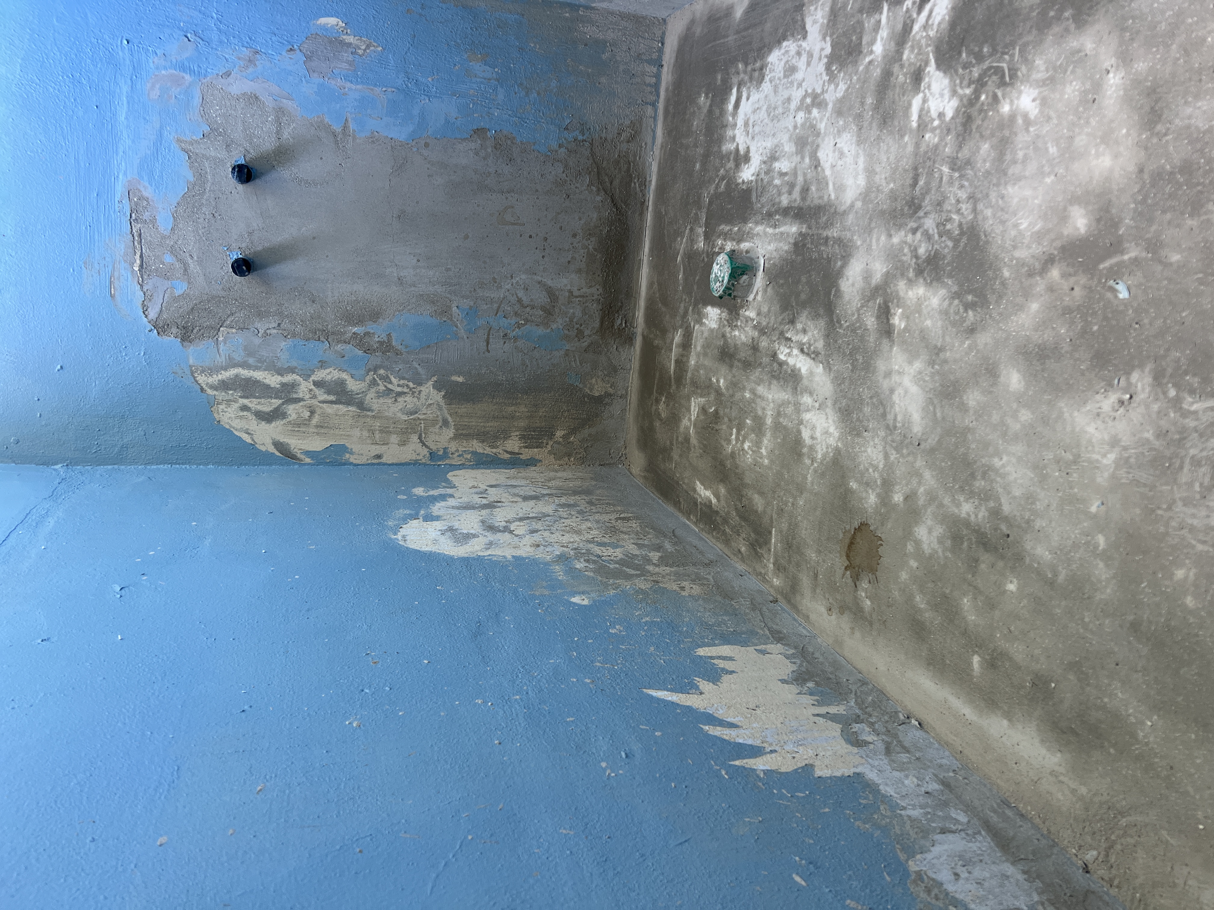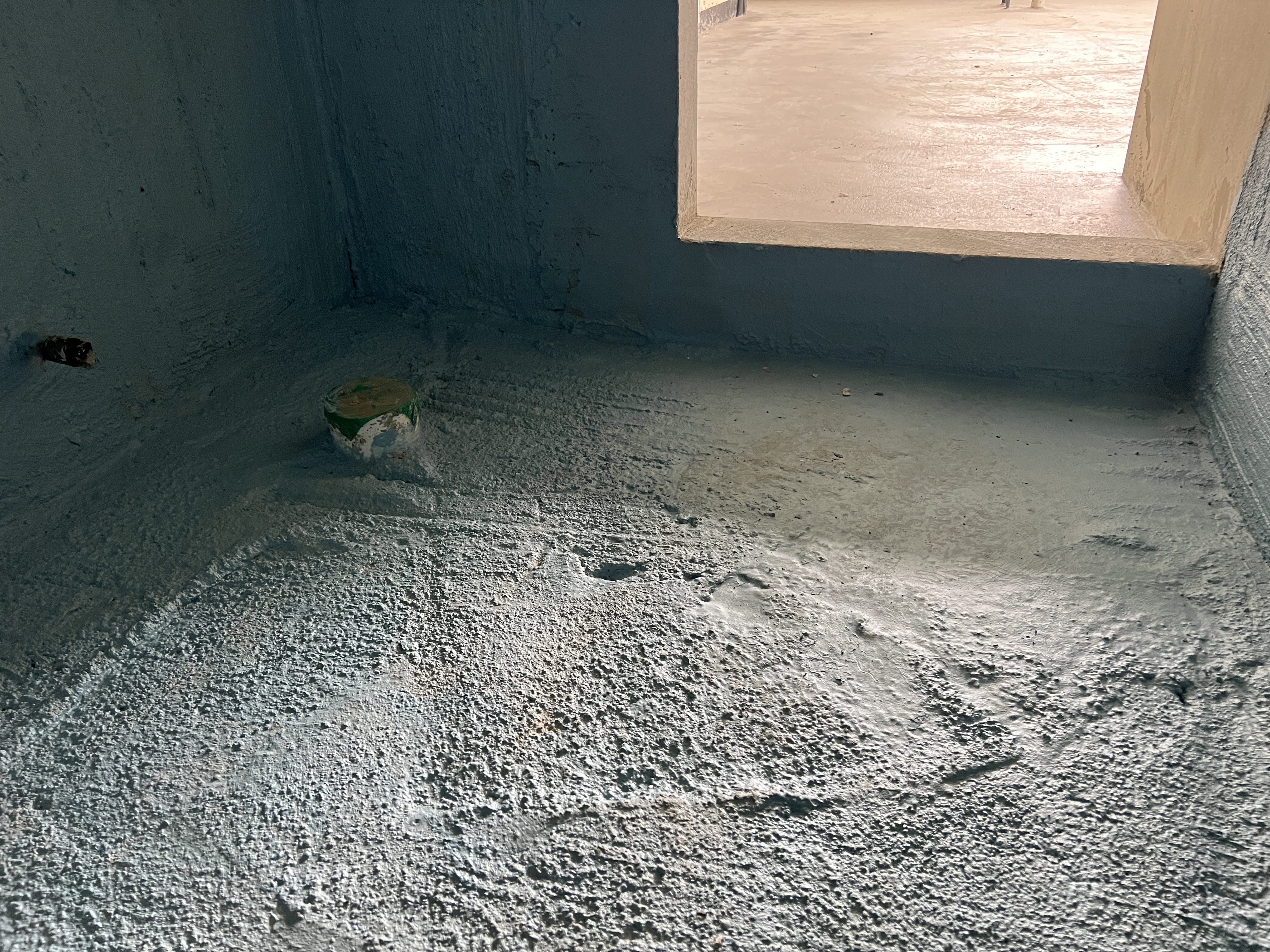 화장실 방수 후에 마이크로시멘트를 바르려고 했는데 벽면과 바닥이 너무 거칠어서 중단한 상태 입니다.