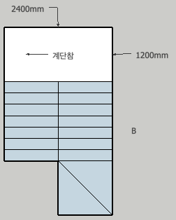 2. 만약 200제곱미터를 초과하는 건물이 되어 저 법규를 따른다면 ㄷ자 계단을 구상 중인데 3층에서 다락을 가는 층고가 3미터를 넘어 중간에 계단참을 만들어야 하는데 계단참의 크기가 1.2미터 이상이여야 된다고 하는데 첨부된 사진과 같이 계단참의 크기가 B 사진과 같아야 할지, A 사진만큼만 되도 될지 궁굼합니다.