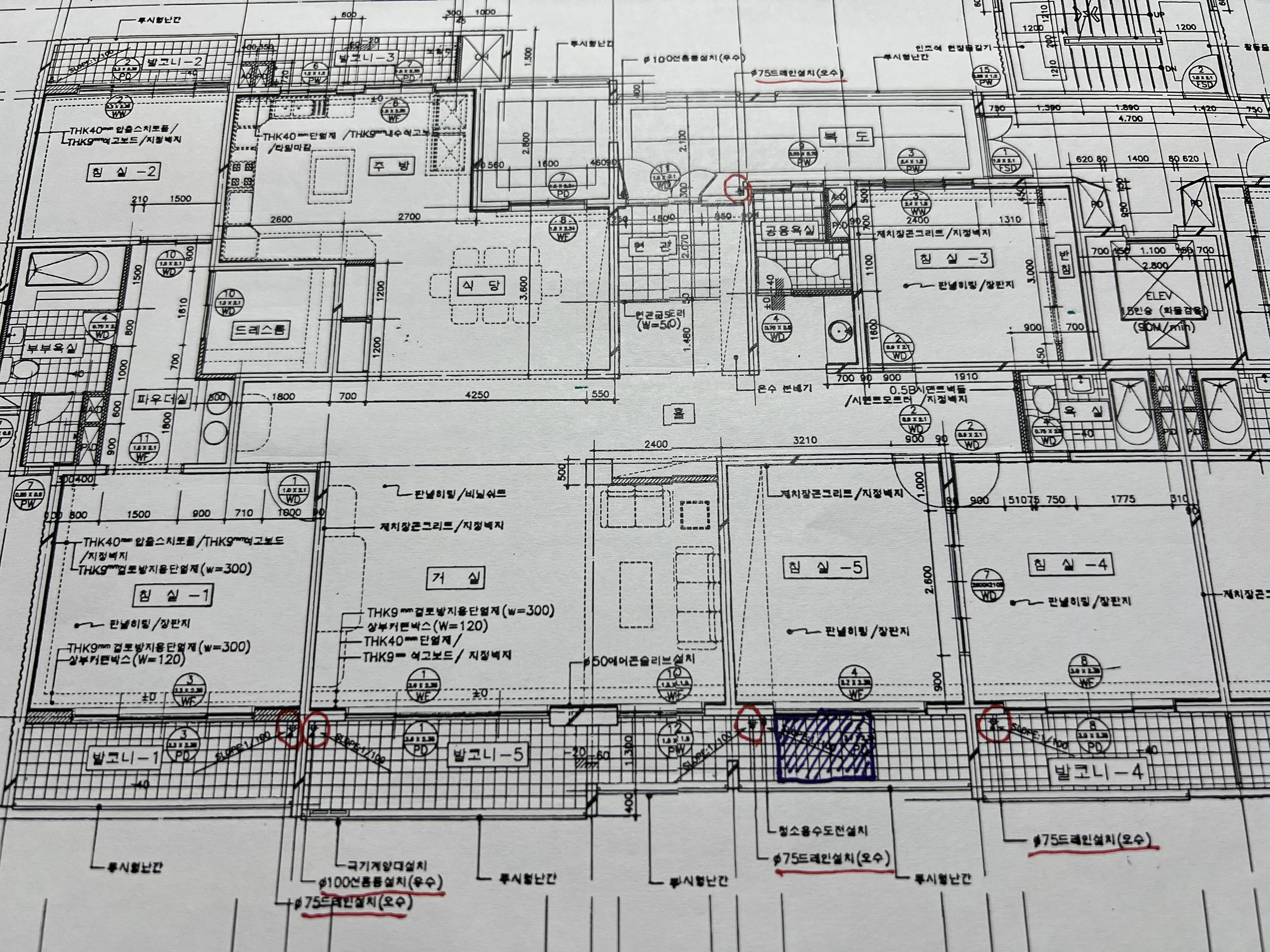 우수관과 발코니 바닥 방수를 잘해야 할 거 같은데