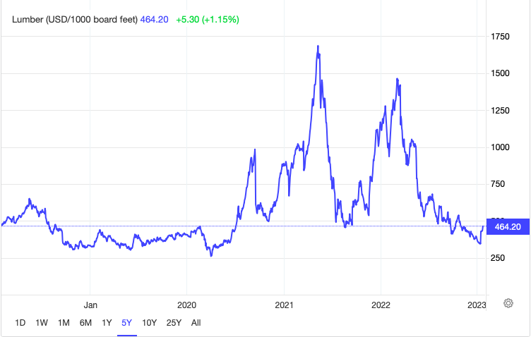 2023년 목재가격 폭락(코르나 이전가격)