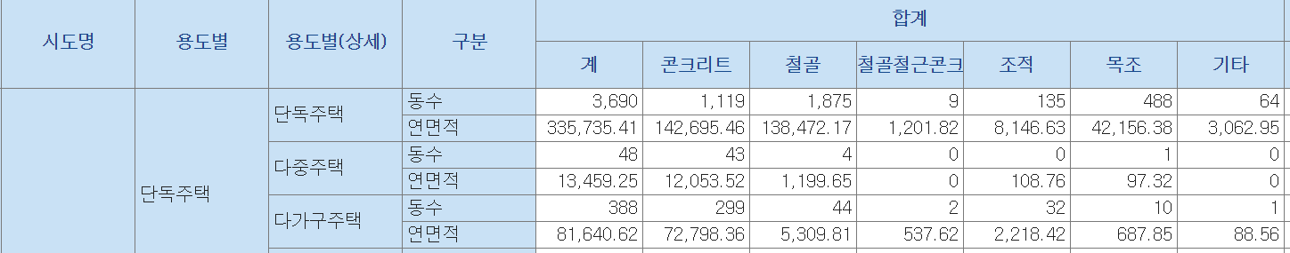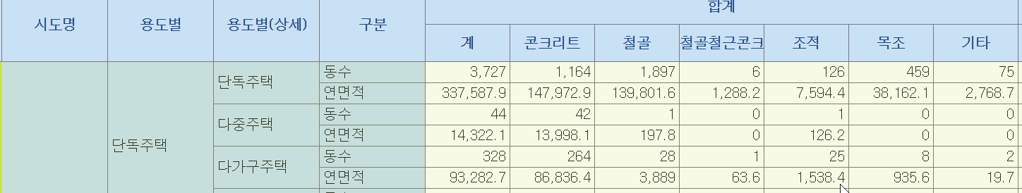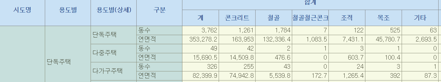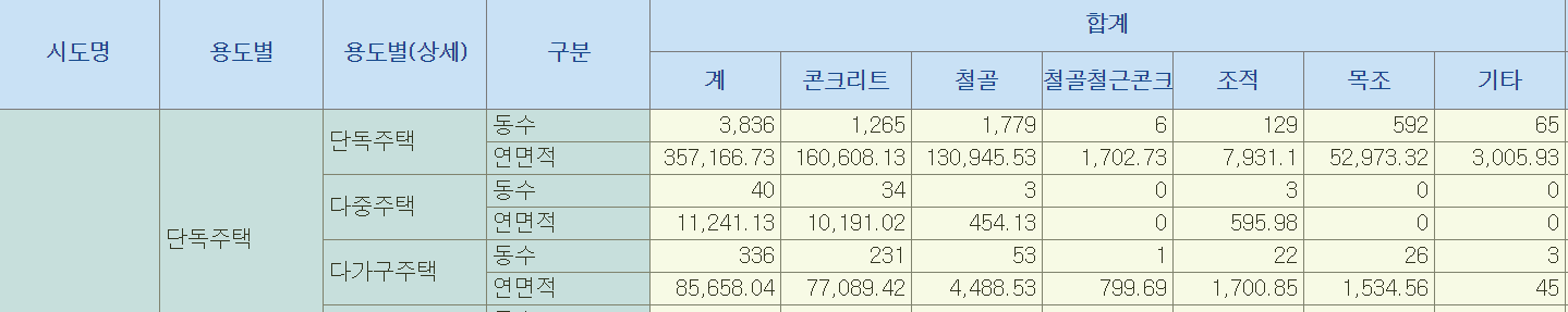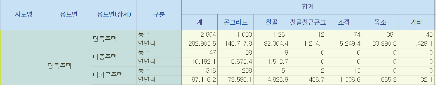 아래는 구조별 단층집의 비율을 나타낸것으로 보입니다.