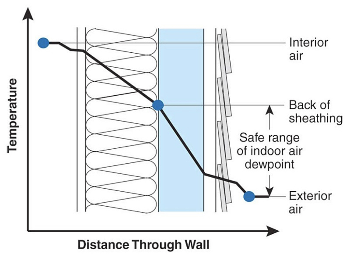 첨부한 그림에서처럼, 외단열이 충분하다면, 겨울에 이슬점이 osb 뒷쪽 외단열층으로 밀려나서, 내부결로가 생겨도 안전(safe)하다는 이야기가 있더라구요.(osb 및 구조체가 영향 받지 않기에)