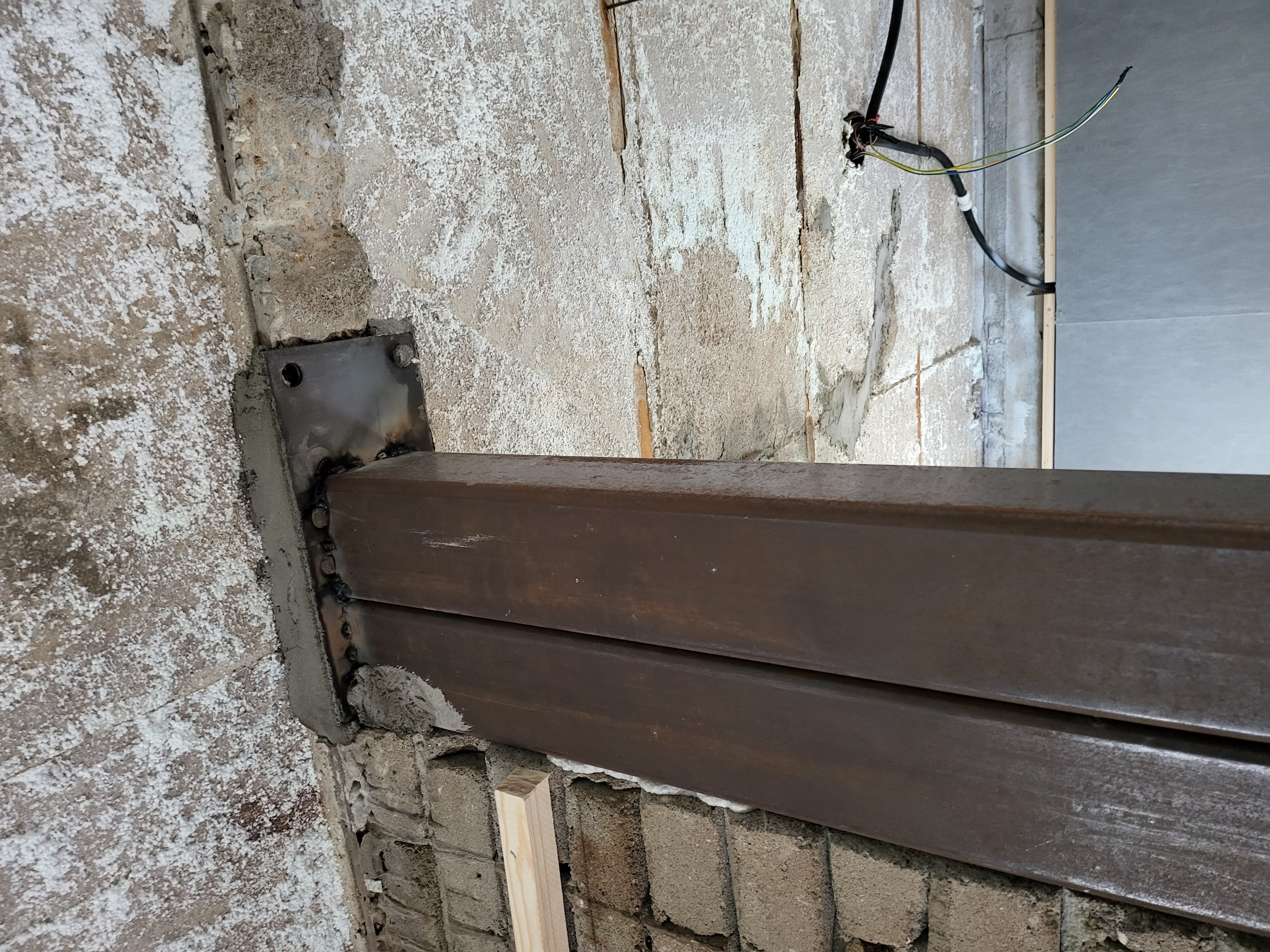 현재 잘라낸 벽의 끝에 철재 기둥을 하나 세우는 것이 좋겠습니다.