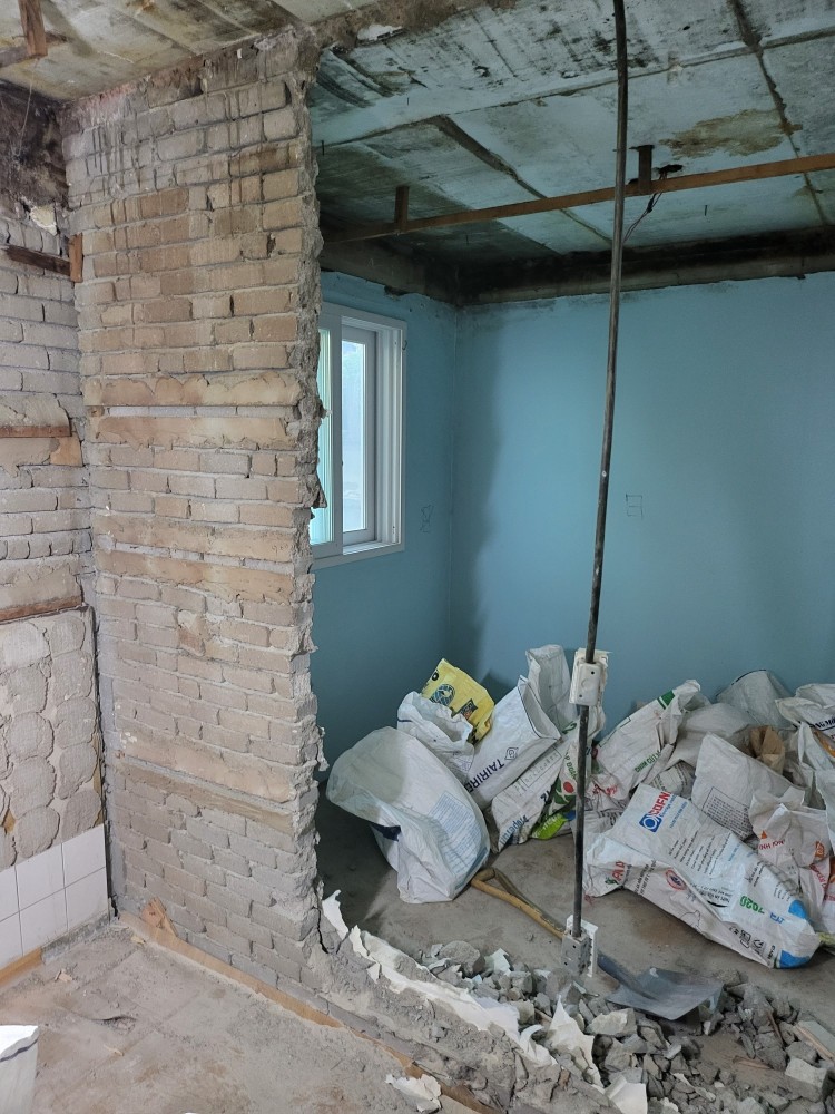 살짝 아차 싶은 상황입니다. 조적이라서 털어도 된다고 생각했는데 내력벽도 조적일수 있다는 생각이 들었습니다.