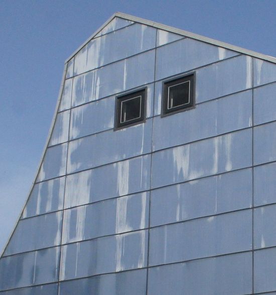 그럼 도심의 폴리카보네이트로 마감을 한 일반 건물은 왜 수년이 흘러도 멀쩡한가? 라고 반문을 하실 수 있으신데요..