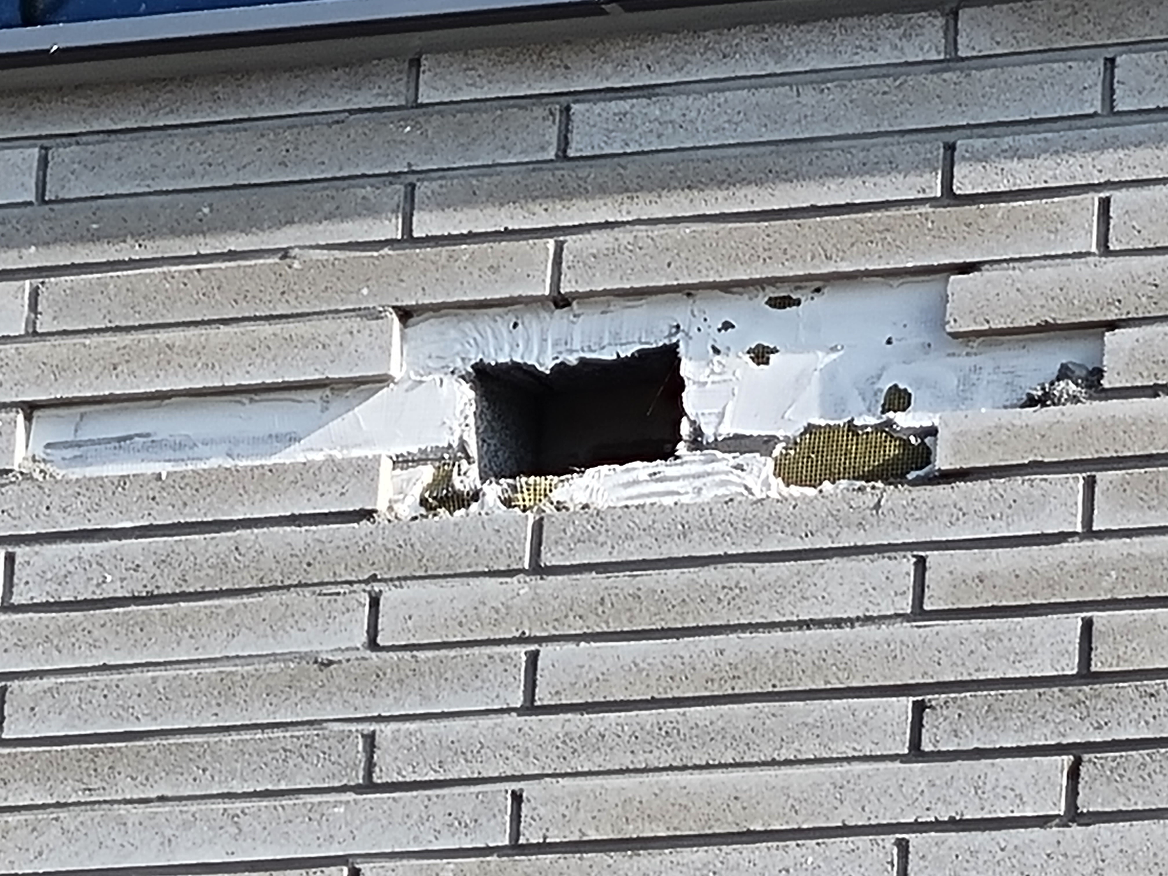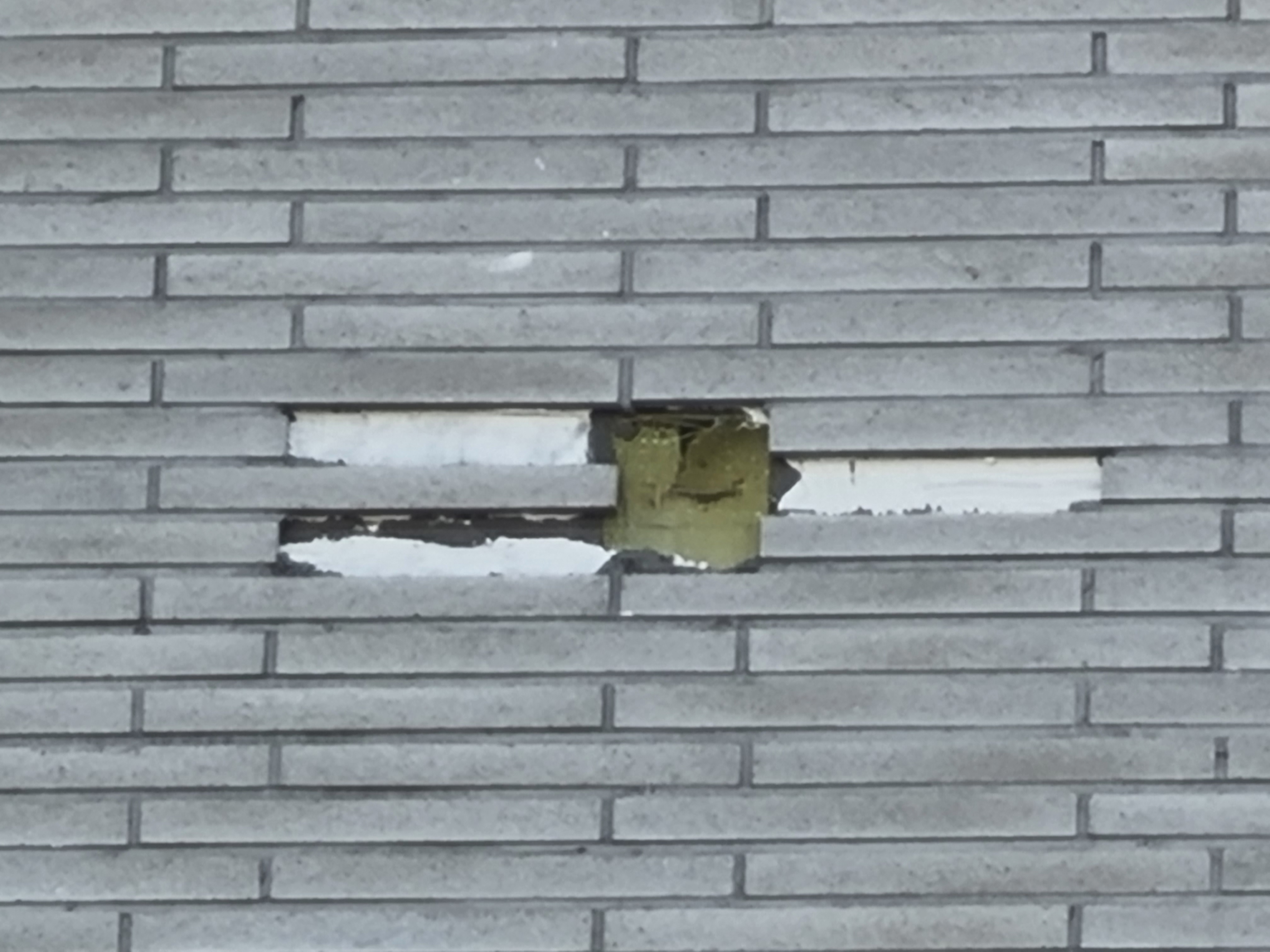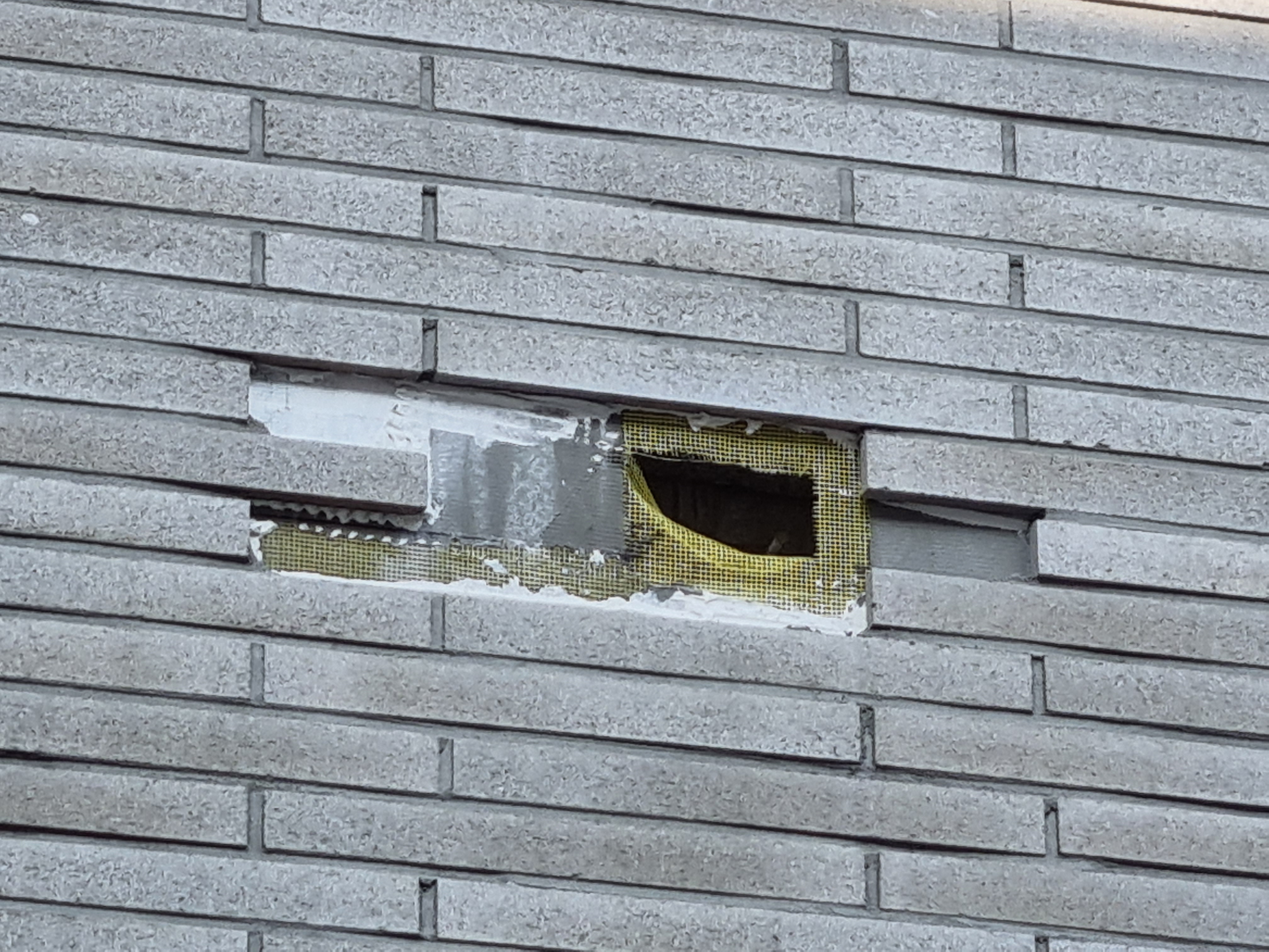 외벽에 비계를 고정했던자리를 메꿔야하는 상황입니다.