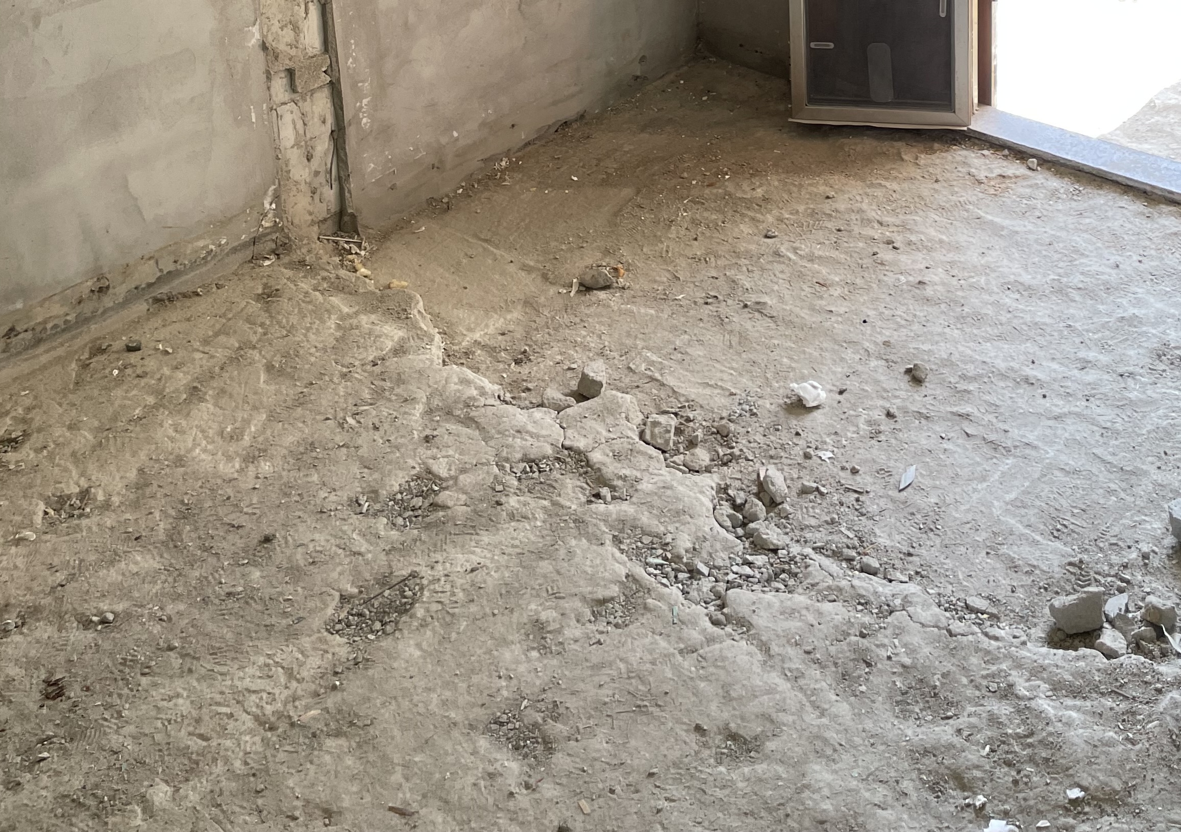철거후 기포콘크리트가 손상된 부분도 있고 기포콘크리트가 없는 부분도 있어요. 기포층은80미리정도 인거 같습니다.