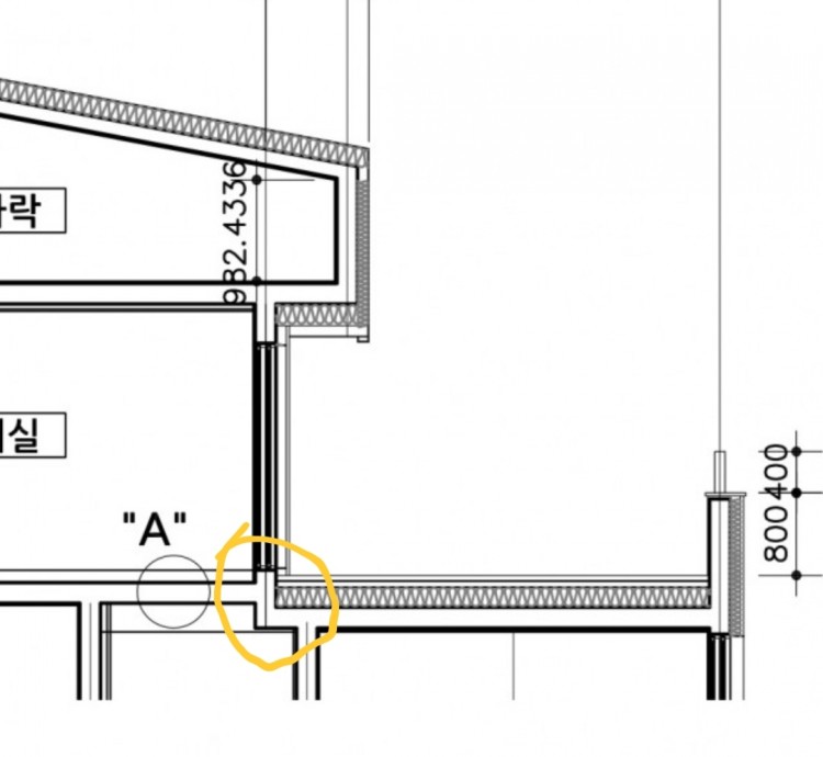 첨부사진 노란 원안에 방수턱 개념의 슬라브다운된 영역은