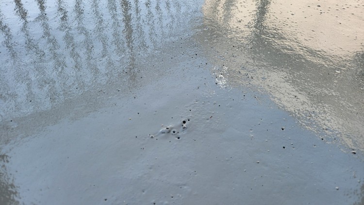 ** 베란다 콘크리트면 우레탄방수 작업 미경화 및 전면 기포현상 발생