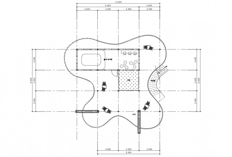 놀이독서방만 2층으로 유리로 된 벽체로 구획돼 있고 2층 옥탑은 데크로 실은 없습니다