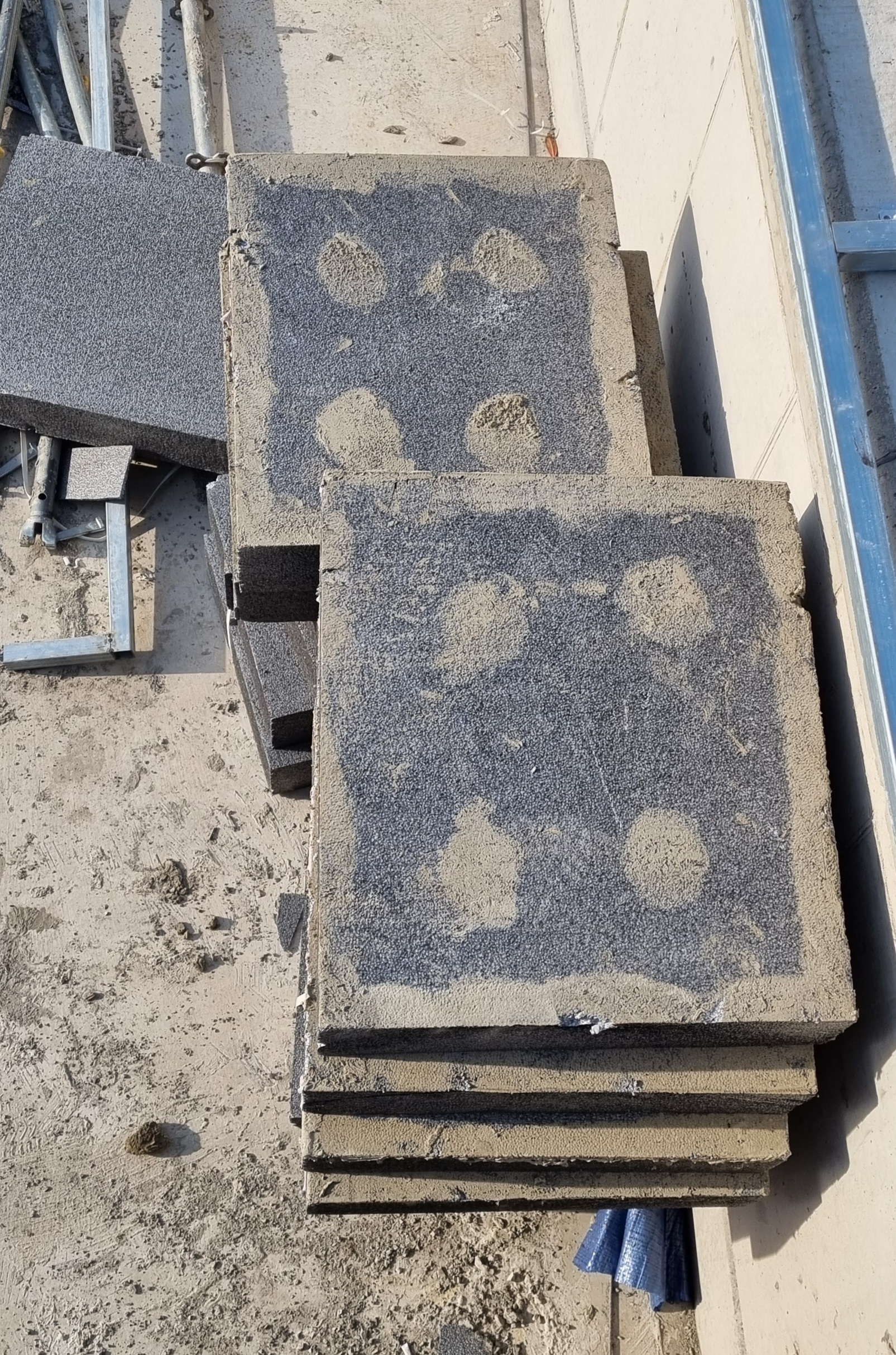 외벽에 붙여놓은 단열재를 다시 떼어내고 몰탈을 걷어냈었습니다만, 몰탈이 단열재 표면에 얇게 남았습니다.